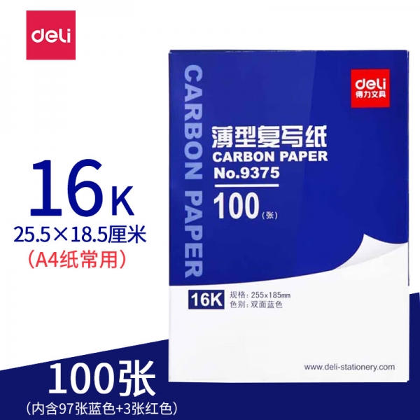得力9375薄型復寫紙(藍)(25.5*18.5cm)-16K(100張/盒)
