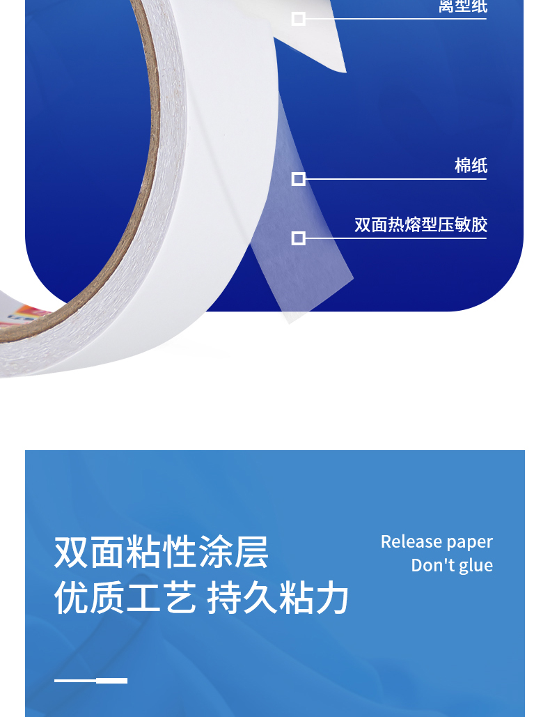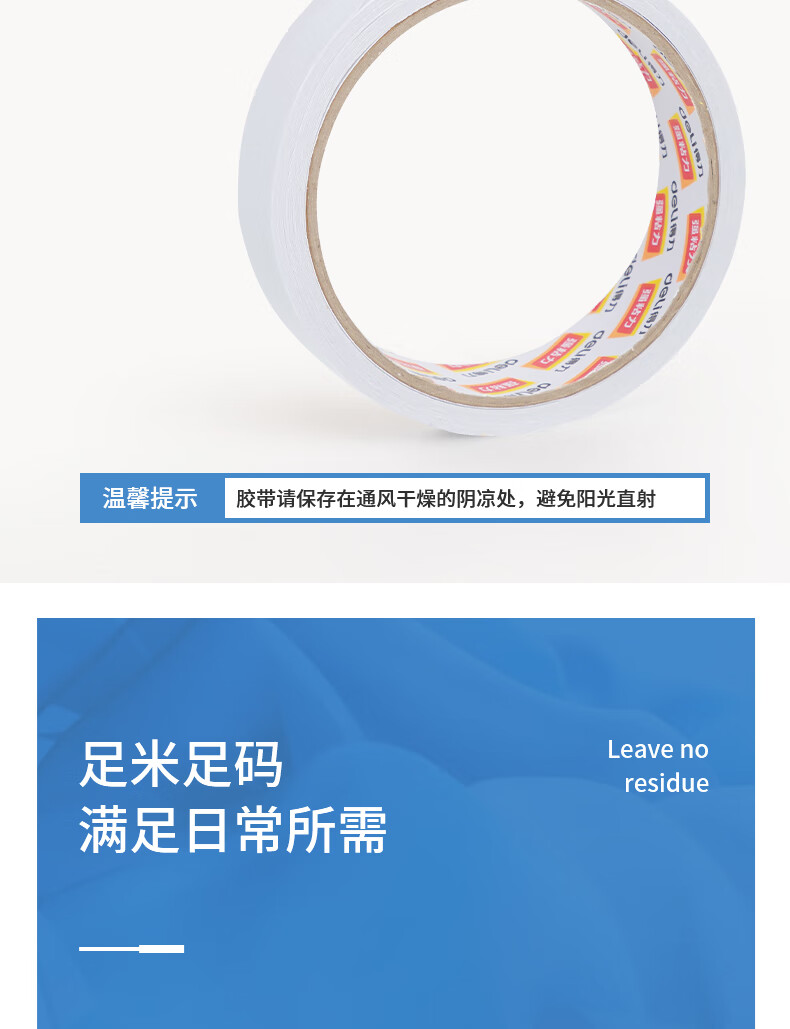 得力30403棉紙雙面膠帶24mm*10y*80um*12卷/袋