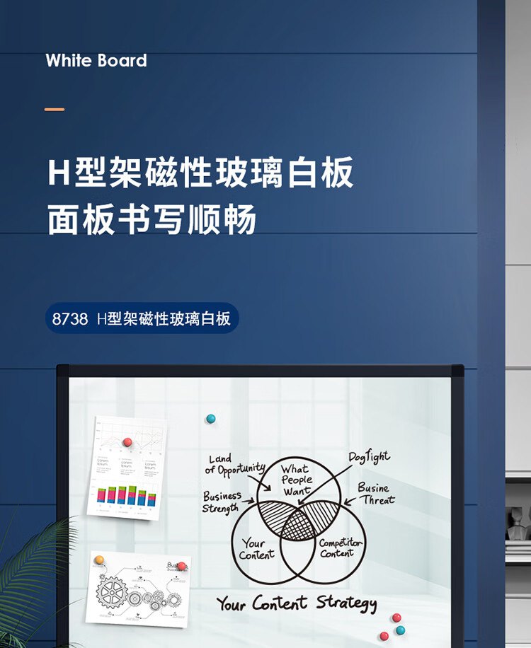 得力8738_H型架磁性玻璃白板900*1200mm(灰色)