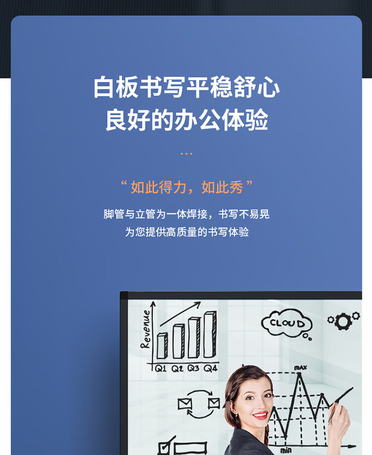 得力8737_H型架磁性玻璃白板900*1500mm(黑色)