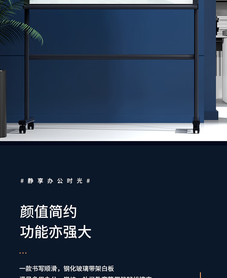 得力8739-H型架磁性玻璃白板1800*900mm(黑色)