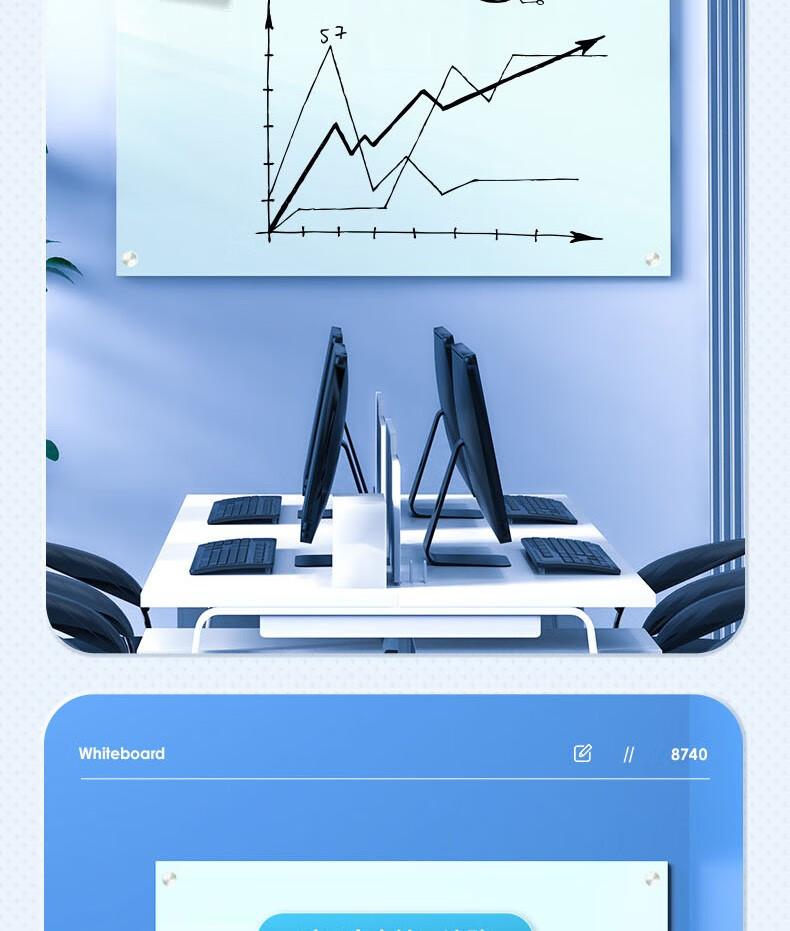 得力8738_H型架磁性玻璃白板900*1200mm(灰色)