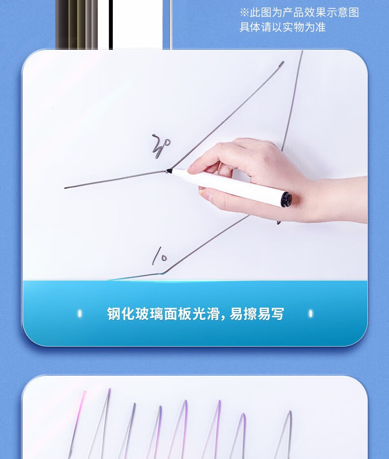 得力8739-H型架磁性玻璃白板1800*900mm(黑色)