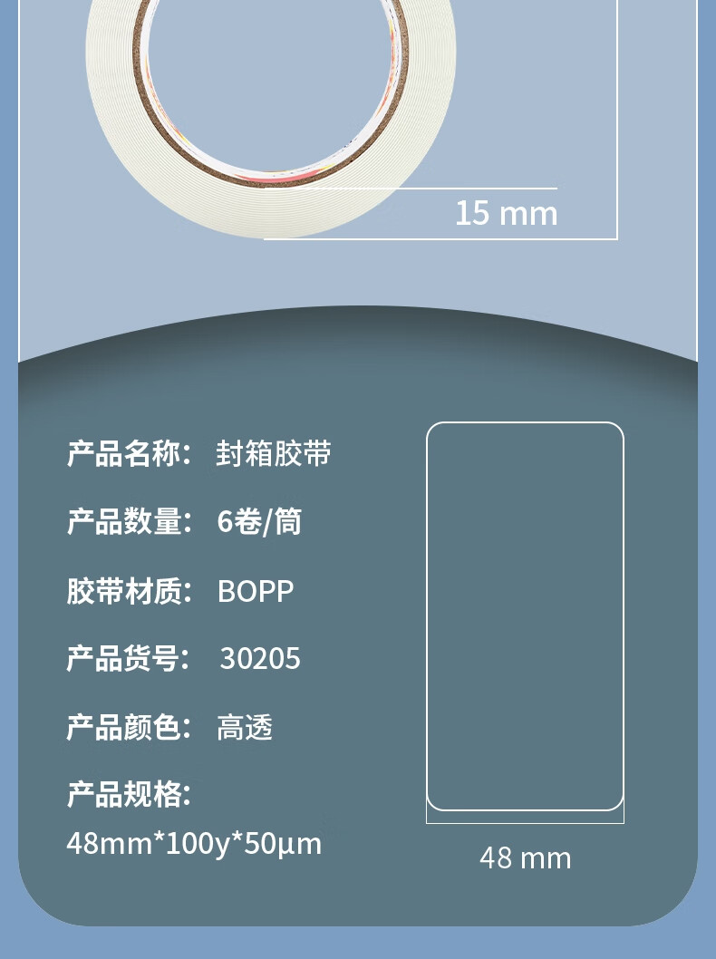 得力30205封箱膠帶48mm*100y*50um(6卷/筒)(高透)
