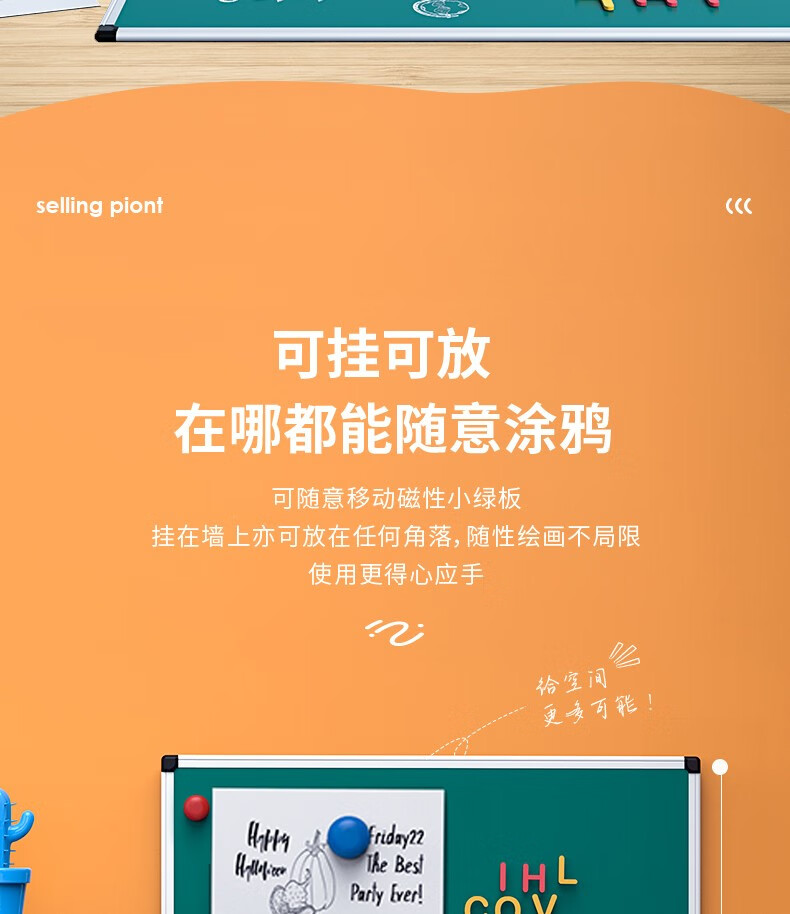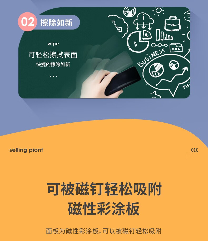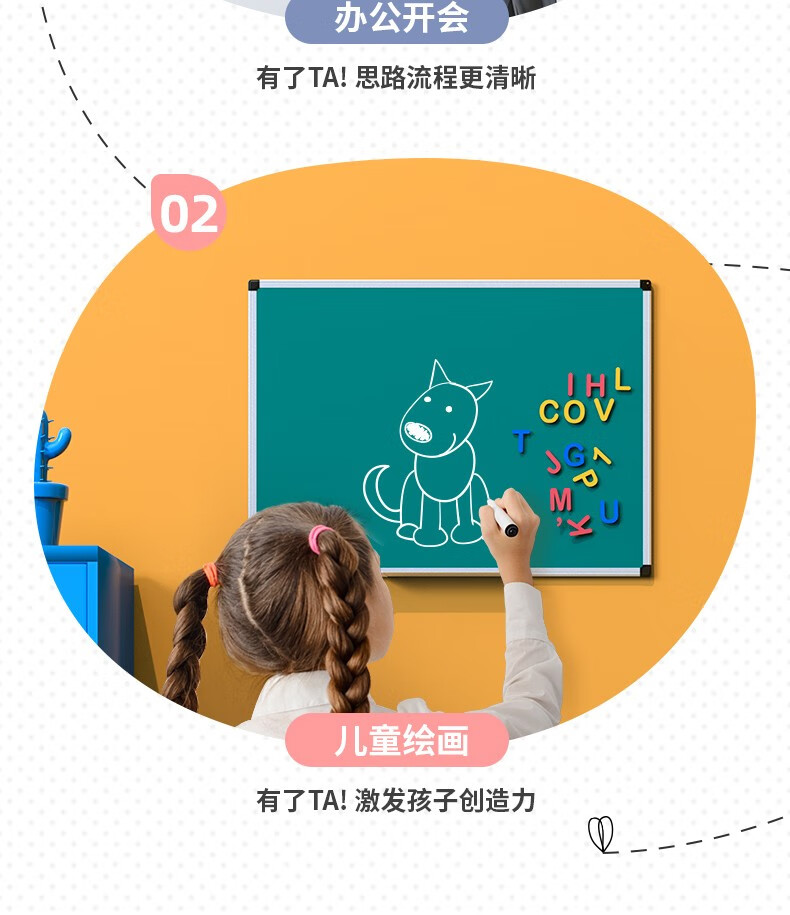 得力8739-H型架磁性玻璃白板1800*900mm(黑色)
