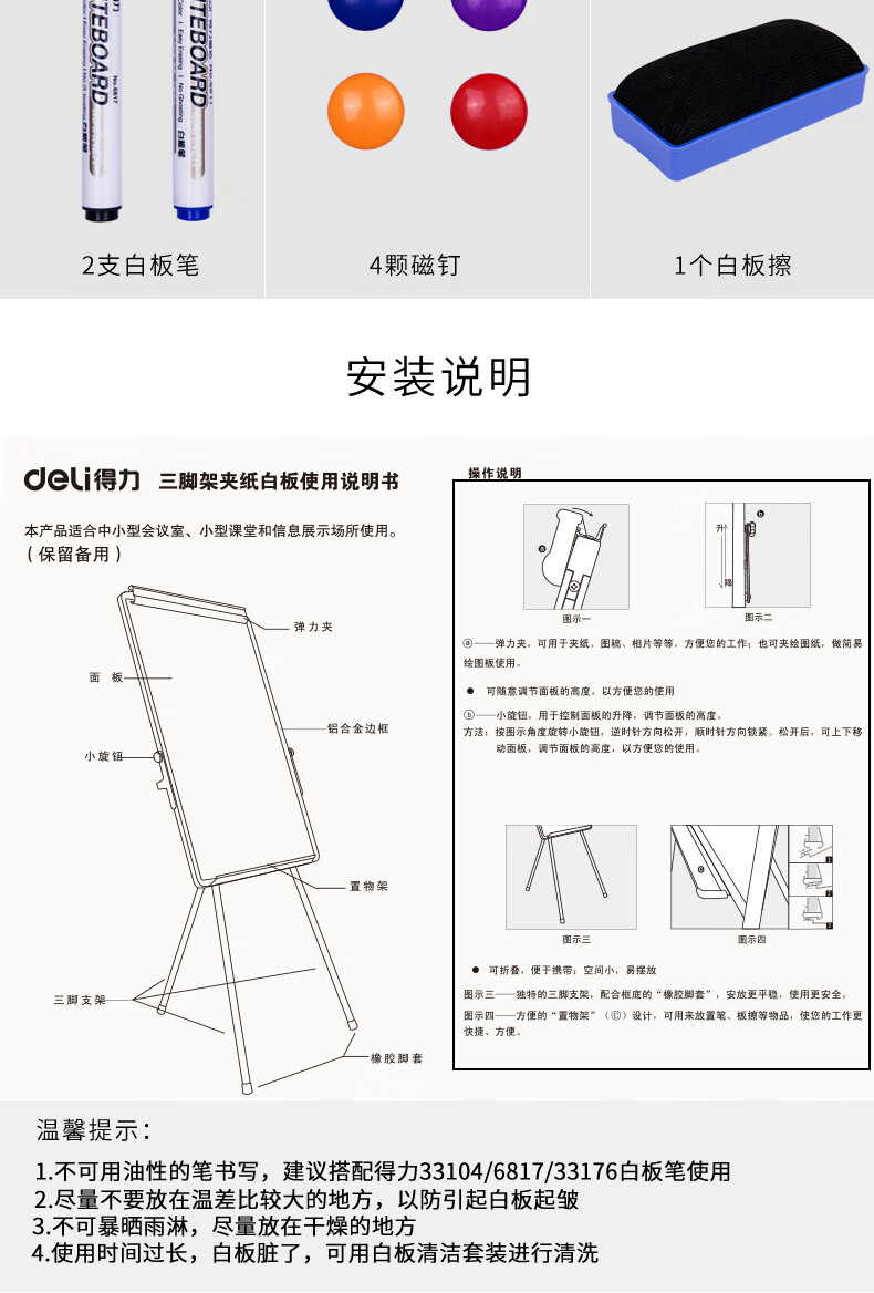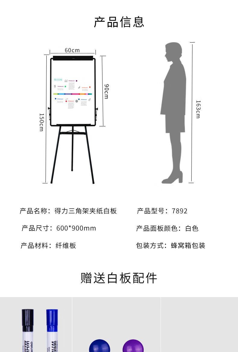 得力8738_H型架磁性玻璃白板900*1200mm(灰色)