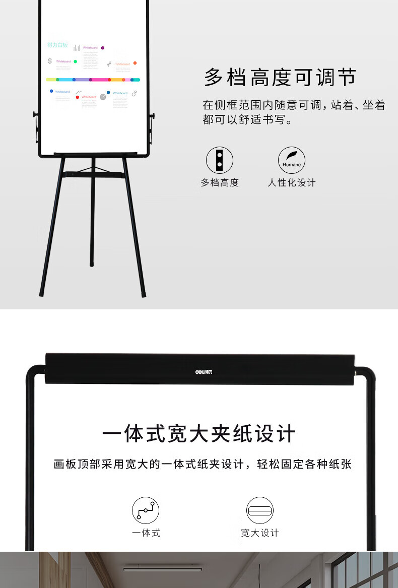 得力8737_H型架磁性玻璃白板900*1500mm(黑色)
