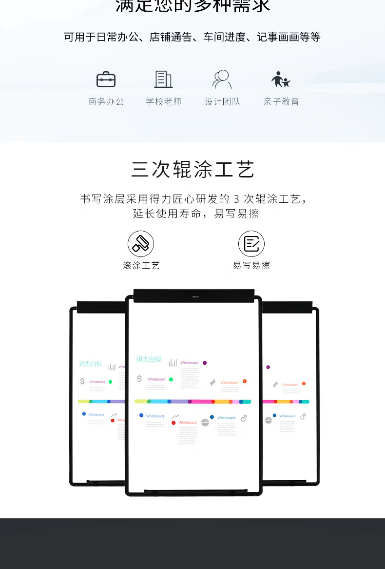 得力8739-H型架磁性玻璃白板1800*900mm(黑色)