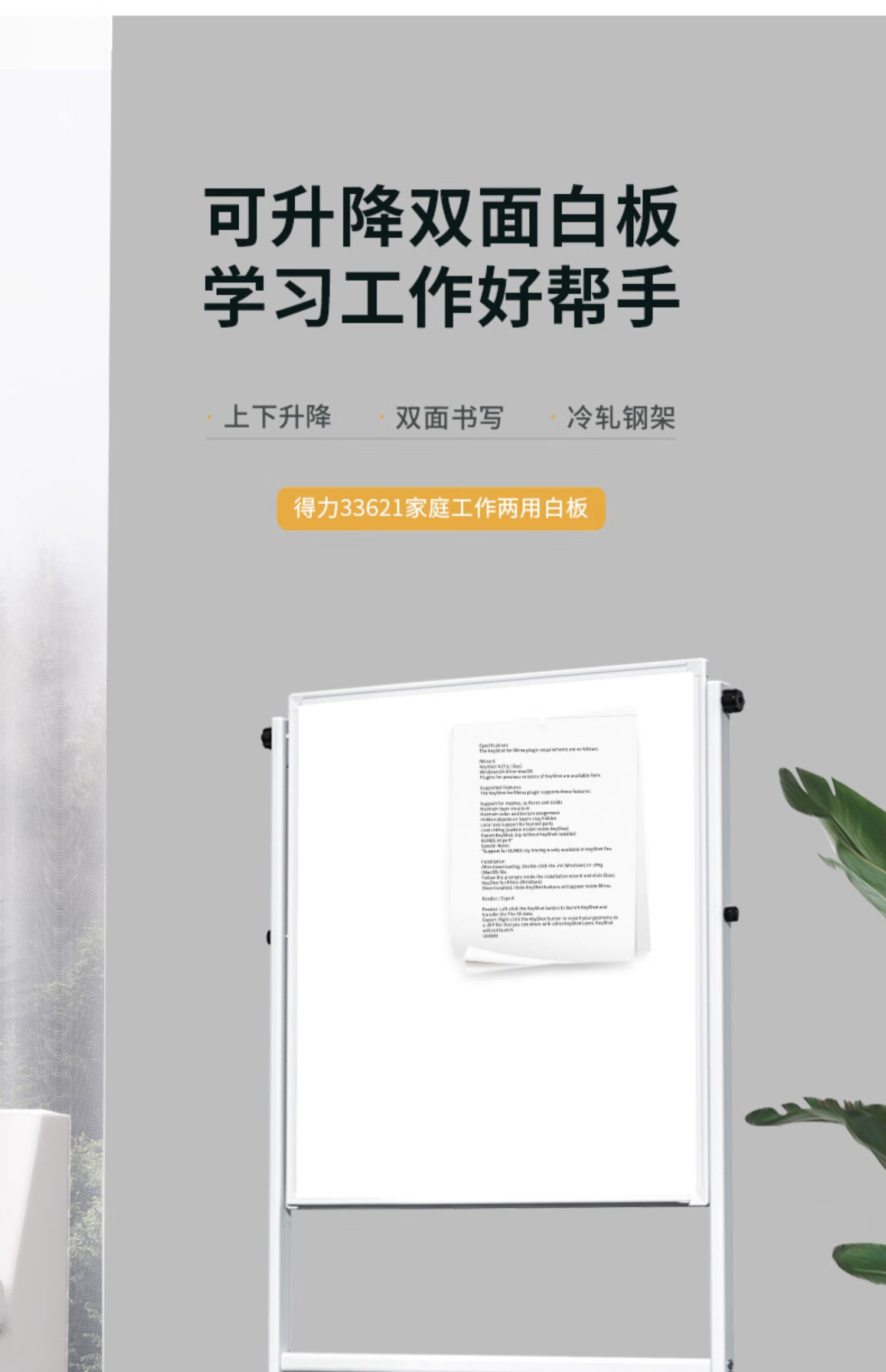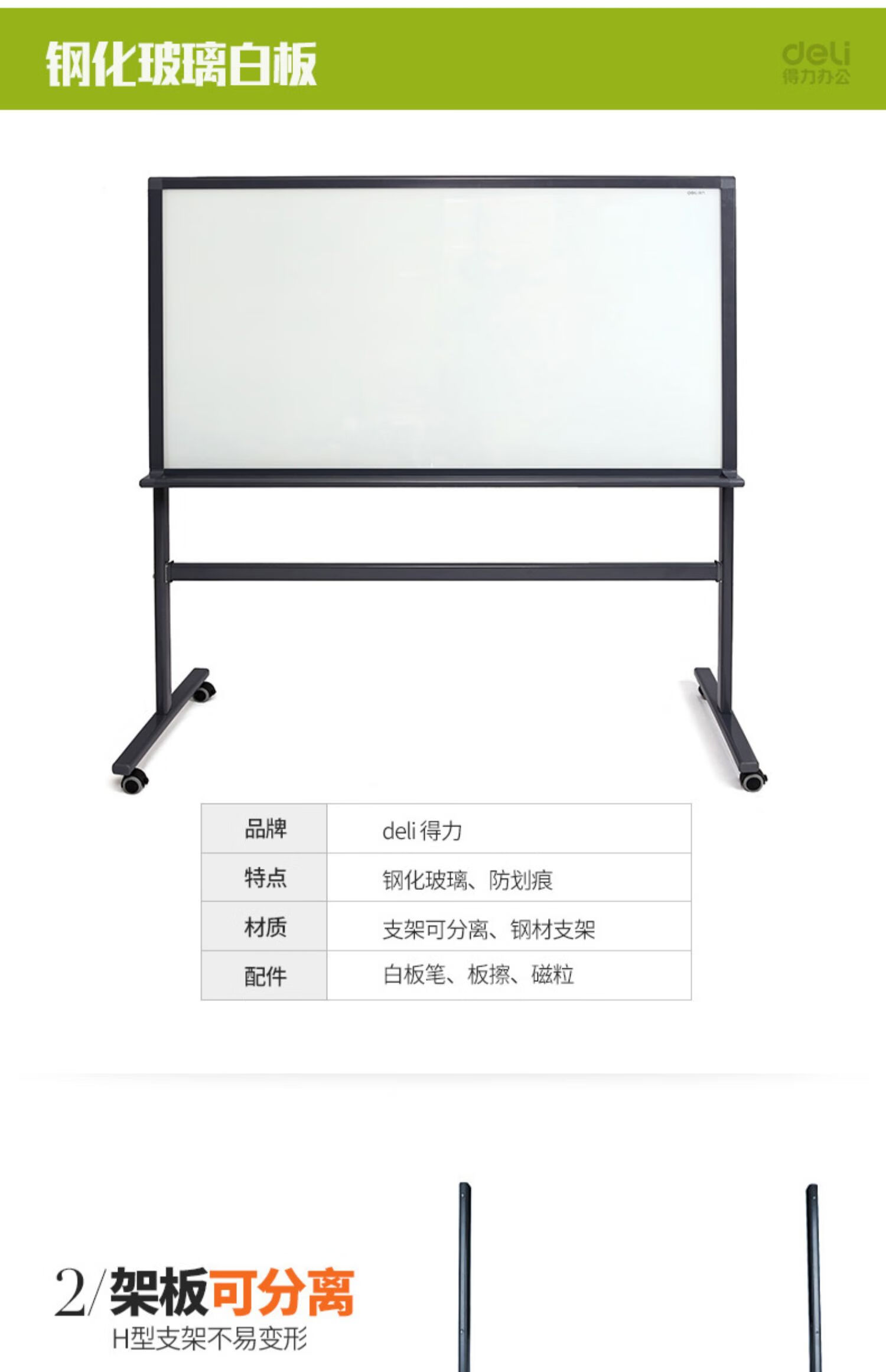 得力8738_H型架磁性玻璃白板900*1200mm(灰色)