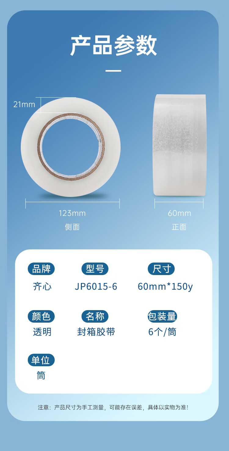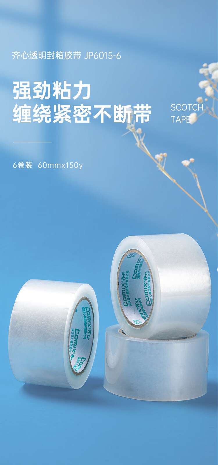 齊心JP6015-6普透封箱膠帶60mm*150y*6卷*3