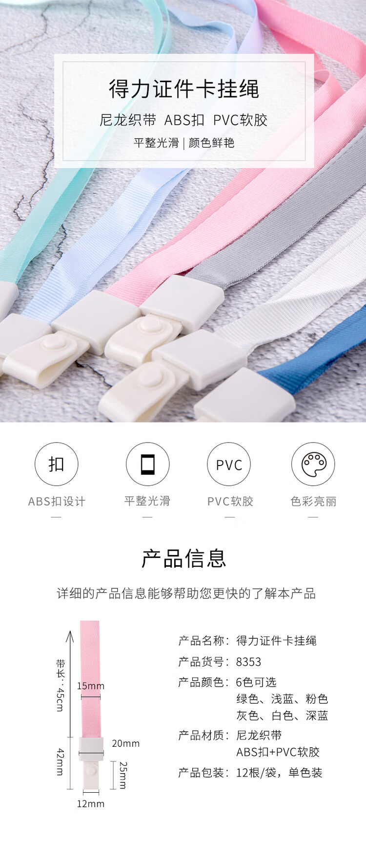 得力8353證件卡掛繩(淺藍)(12根/包)