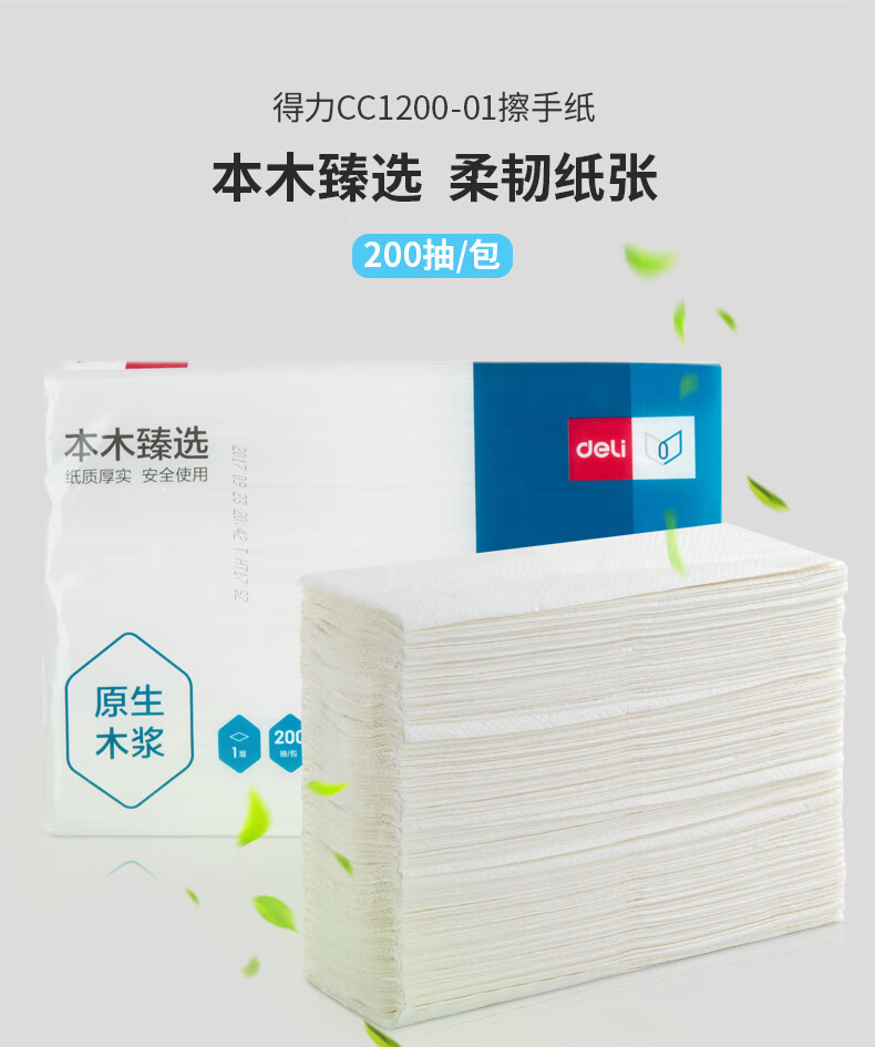得力CC1200-02本木臻選擦手紙單層200抽*20