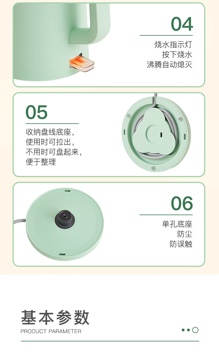 齊心LC-202雙層全鋼防燙電熱水壺 薄荷綠 1.7L