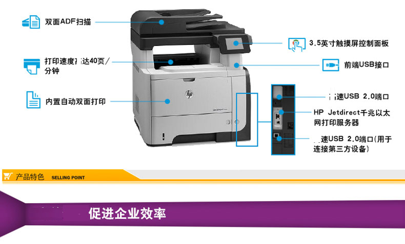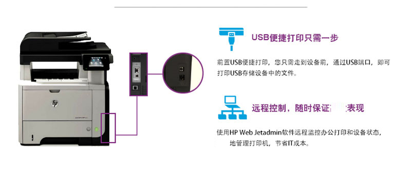 惠普M437DN黑白激光一體機:標準網(wǎng)絡(luò)及雙面