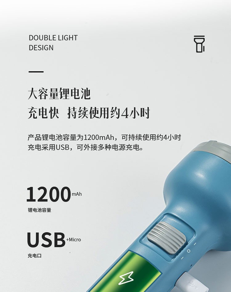 得力3663LED充電式手電筒24*9*6cm*500mAh
