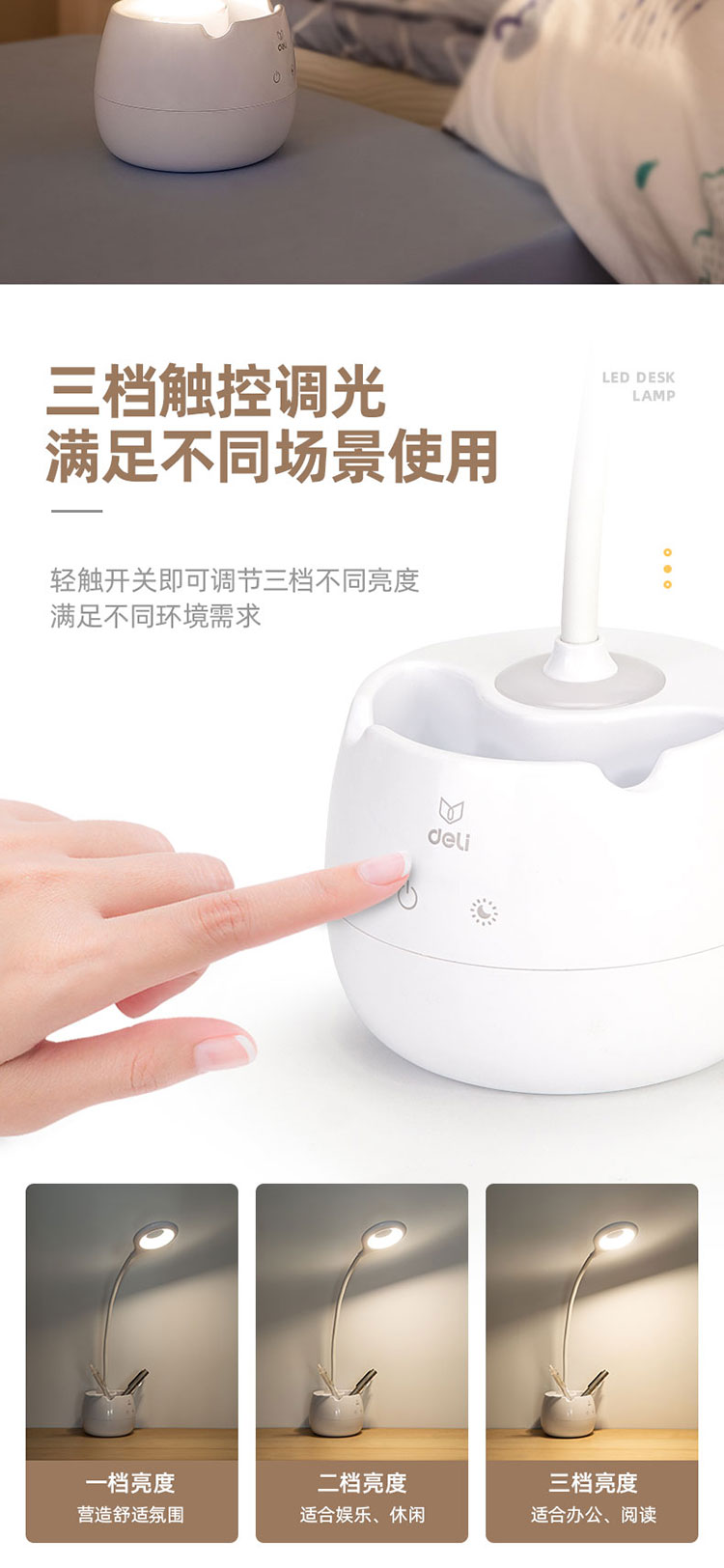 得力4301_LED觸控臺燈(香檳色)六檔可調(diào)適配器DC12V 1A