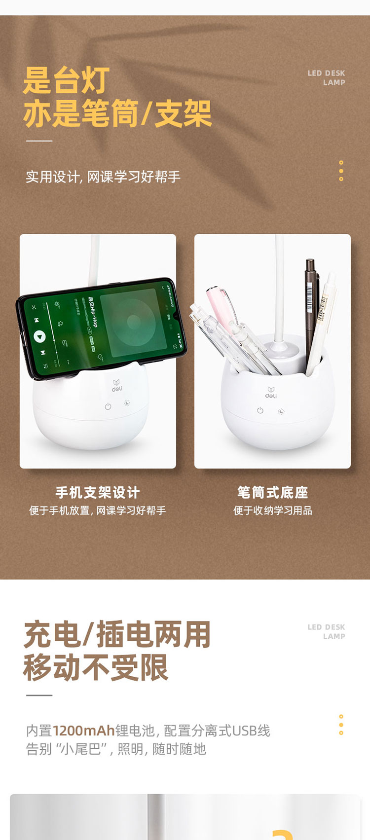 得力4324可充電臺燈1200mAh