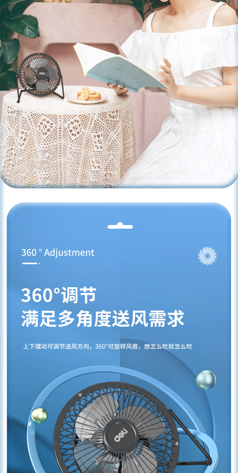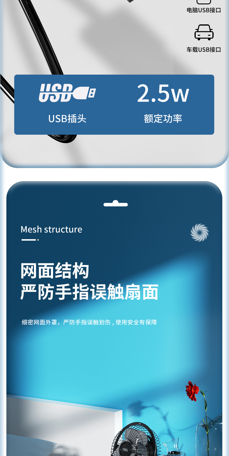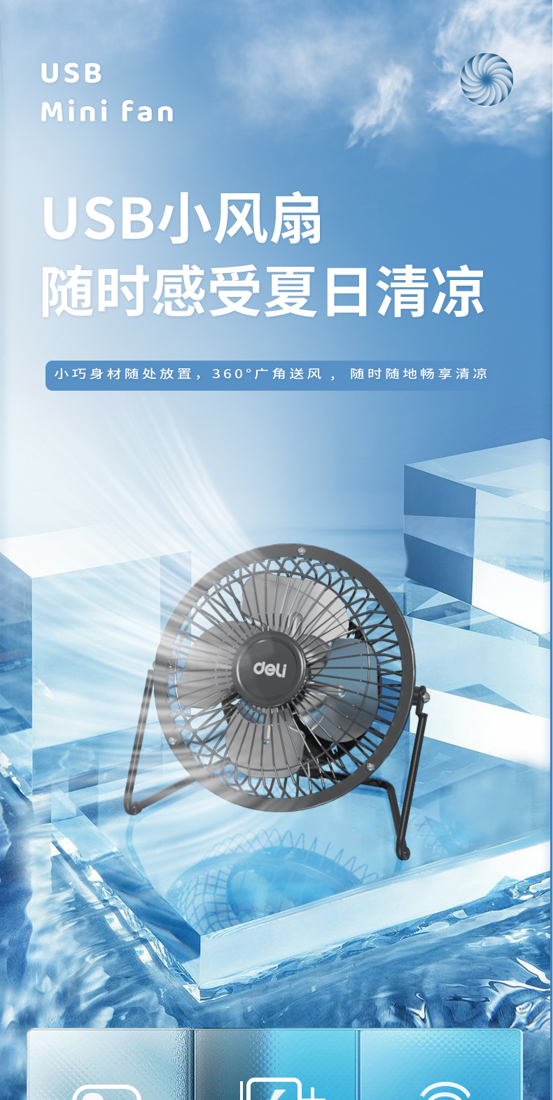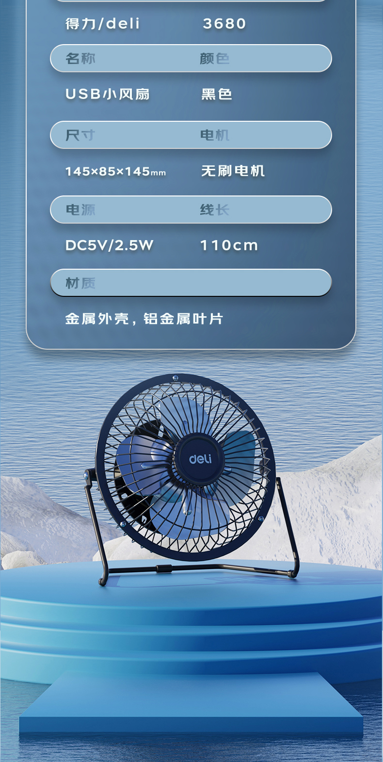 得力3680USB迷你風(fēng)扇4寸鐵藝USB直供電