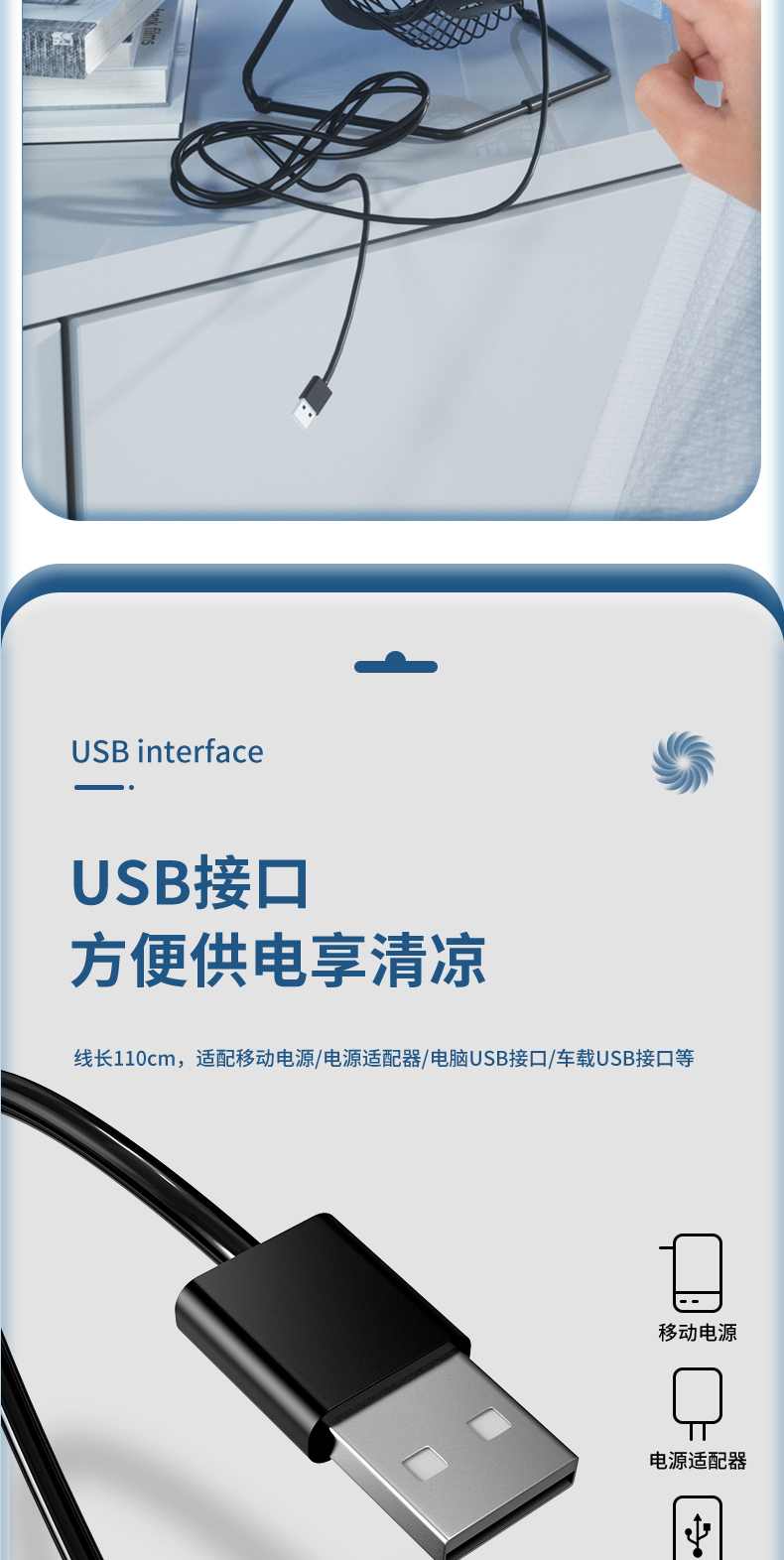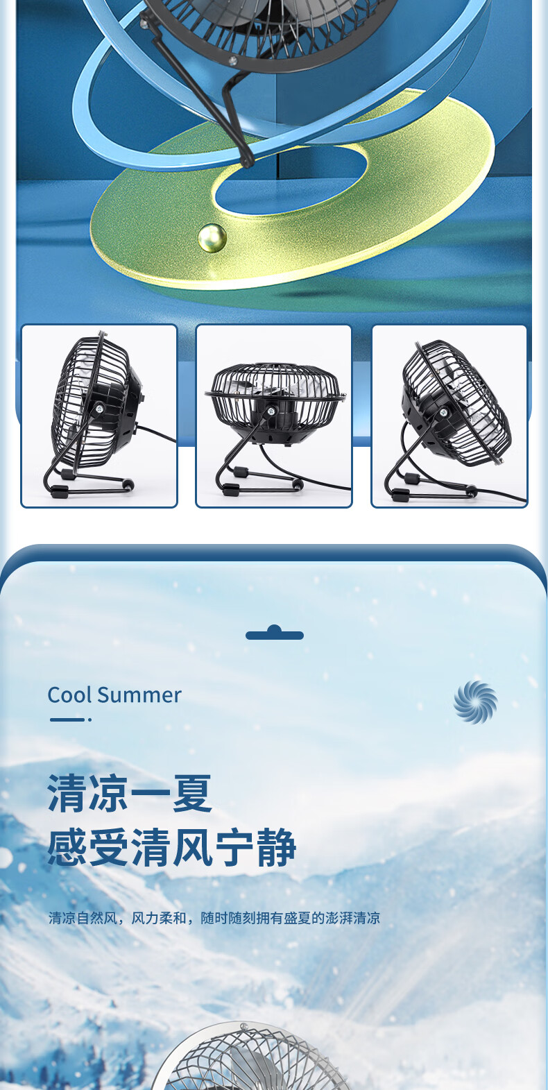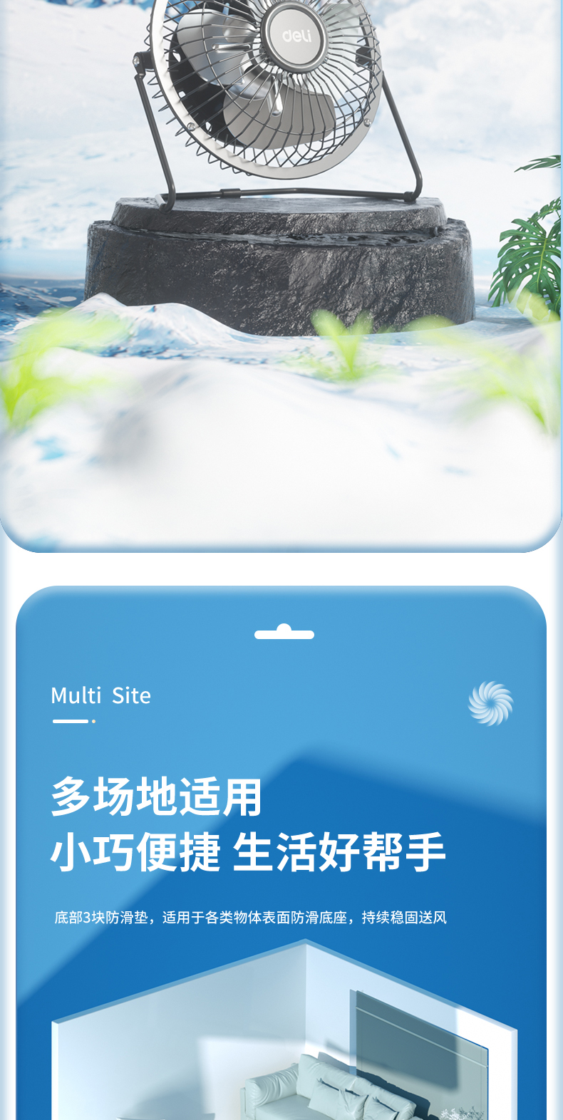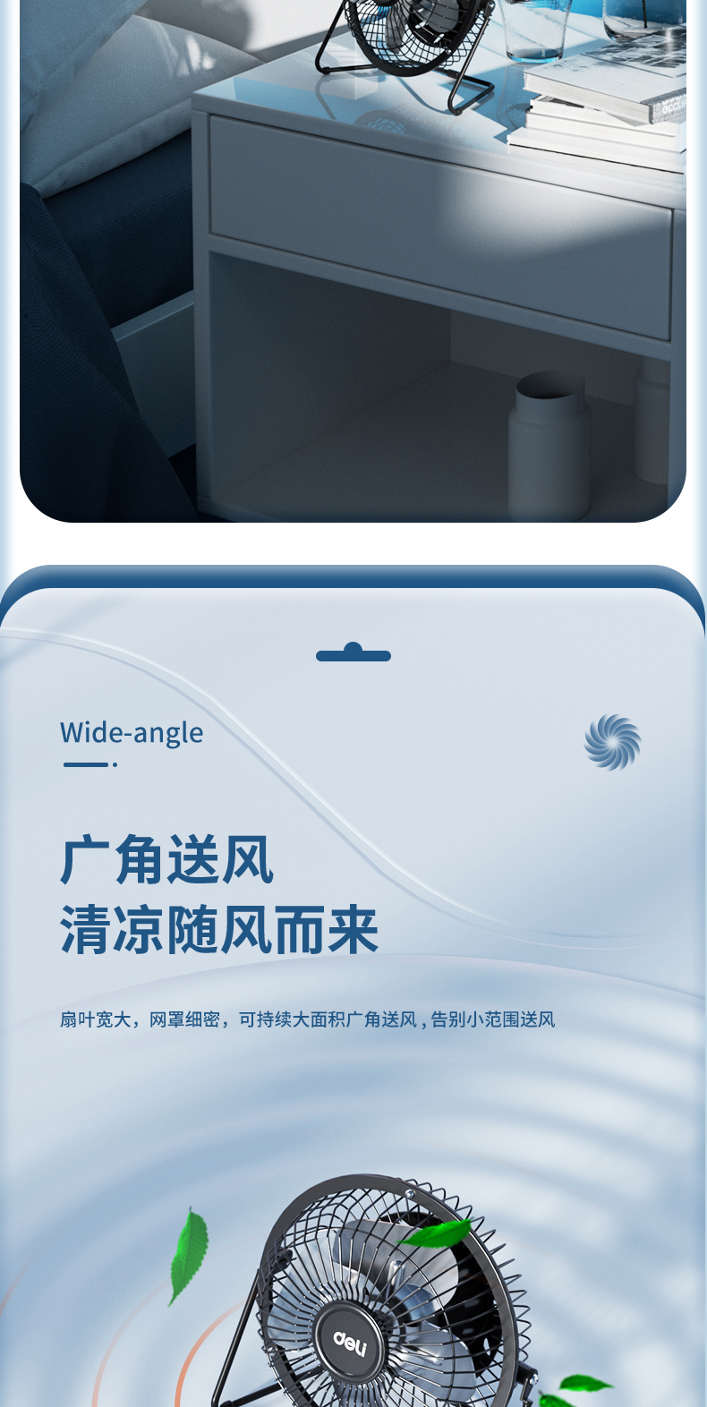 得力3680USB迷你風(fēng)扇4寸鐵藝USB直供電