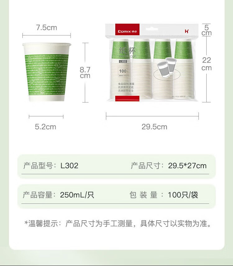 齊心L302健康紙杯9安250ml*100個*20提