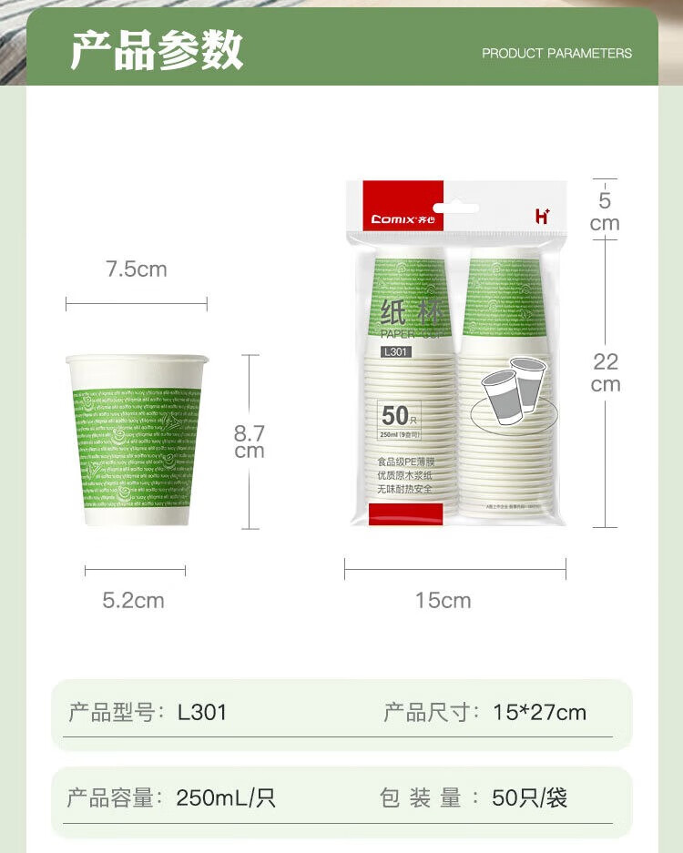 齊心L301健康紙杯9安250ml*50個*40提