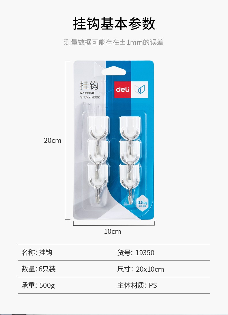 得力19354掛鉤_1.5kg(白色)(2只/卡)