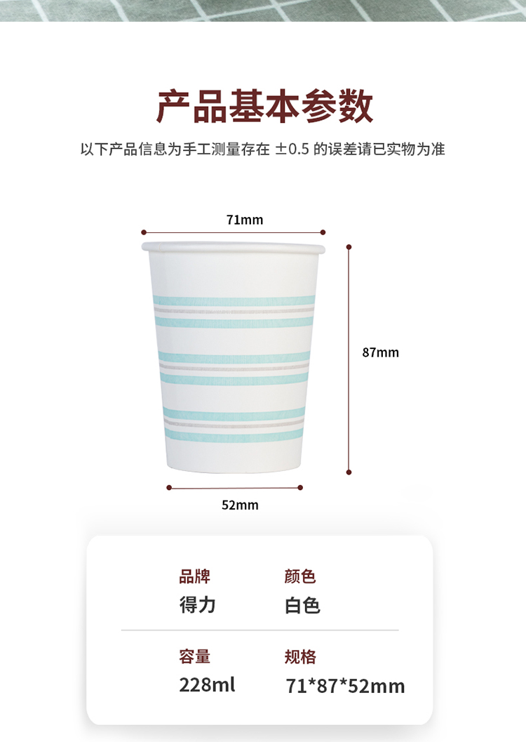 得力19209雙層紙杯(棕)(280ml-50只/袋)