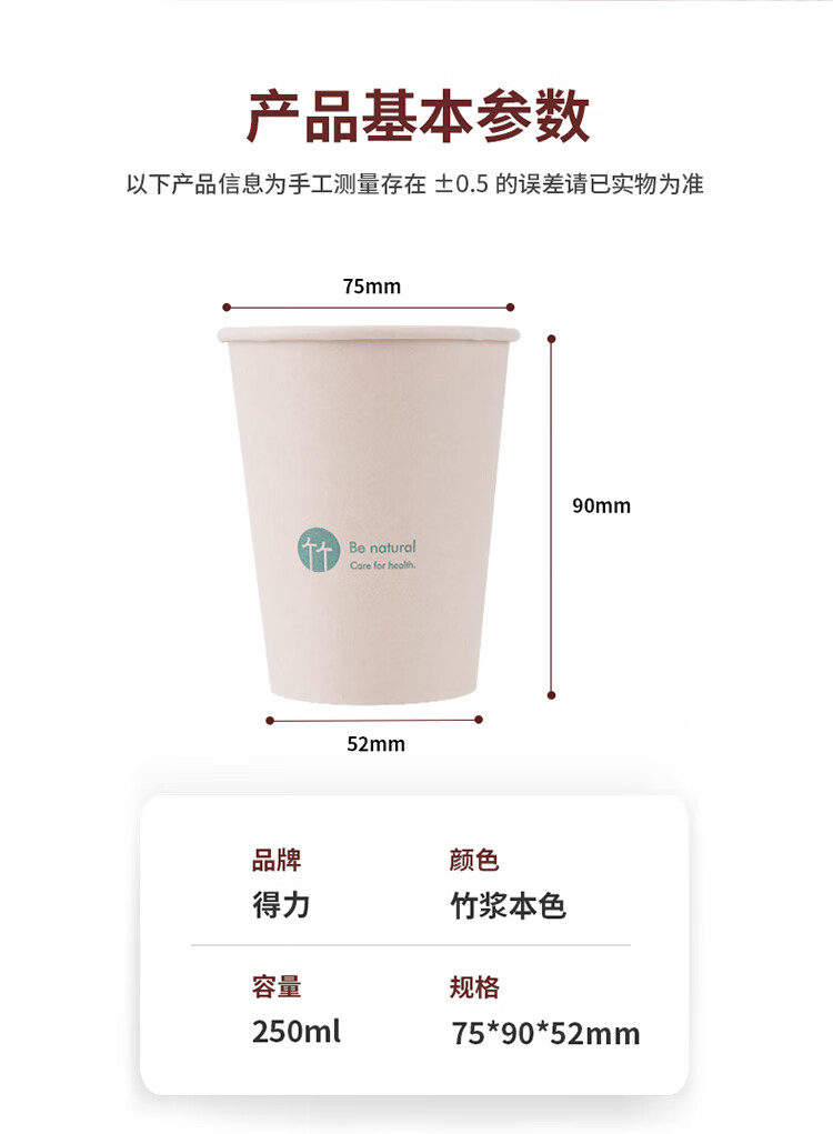 得力19209雙層紙杯(棕)(280ml-50只/袋)
