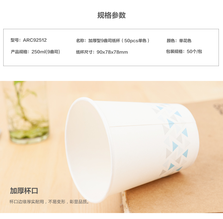 晨光紙杯加厚型9盎司(50pcs單色)ARC92512