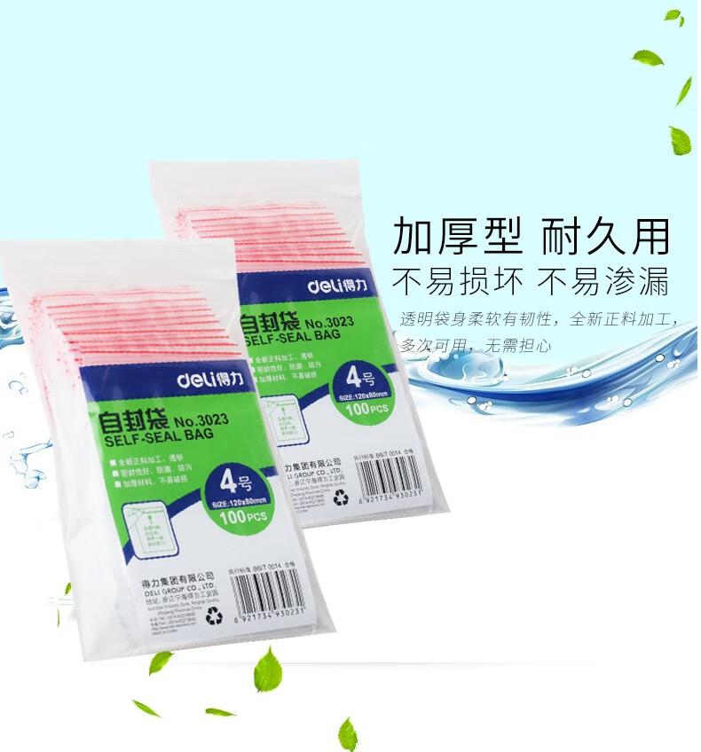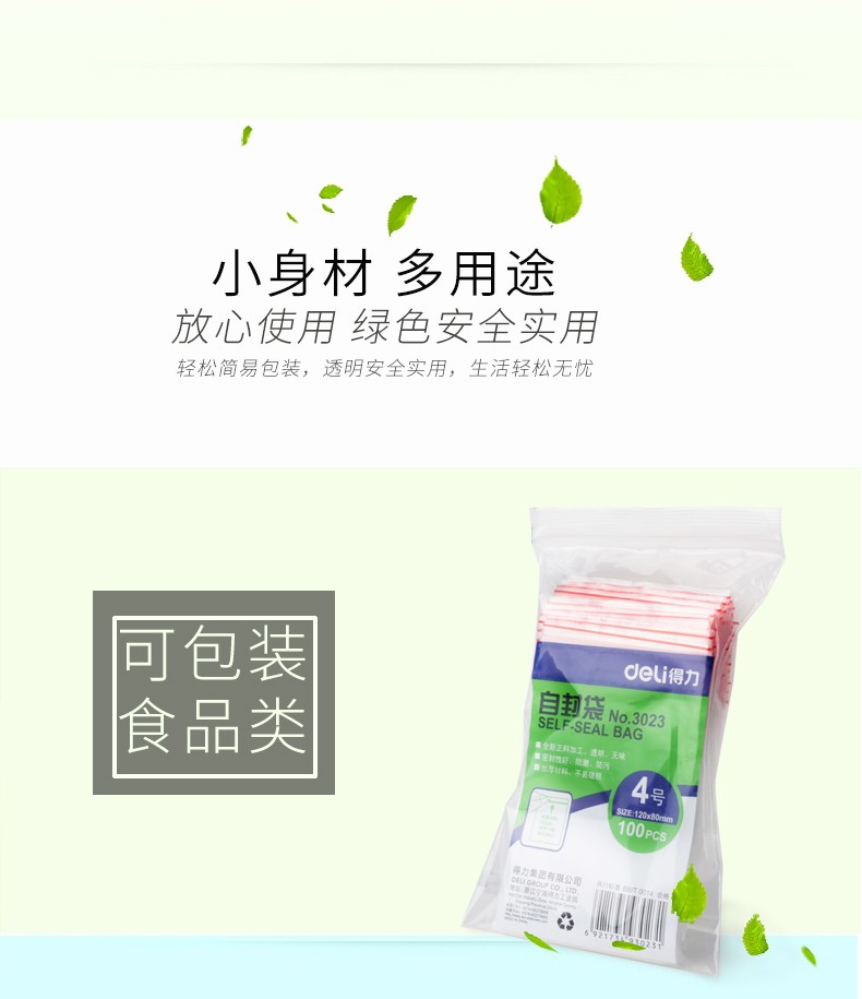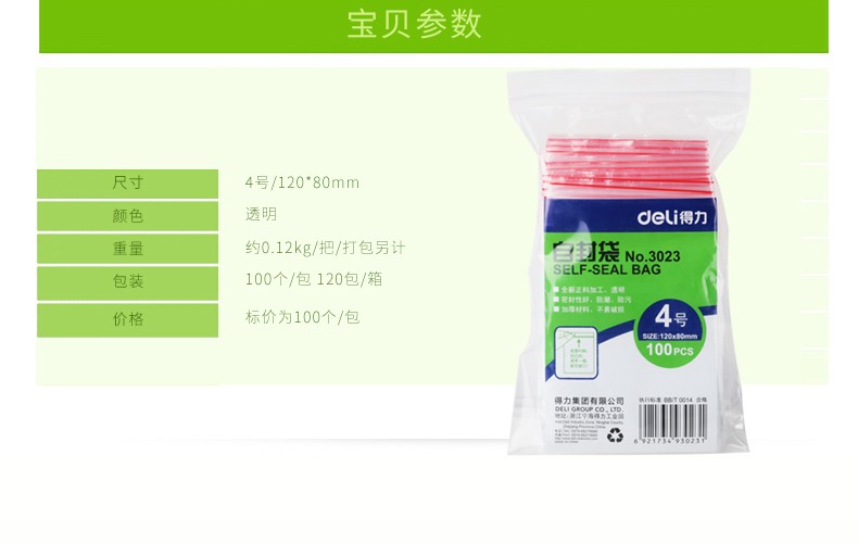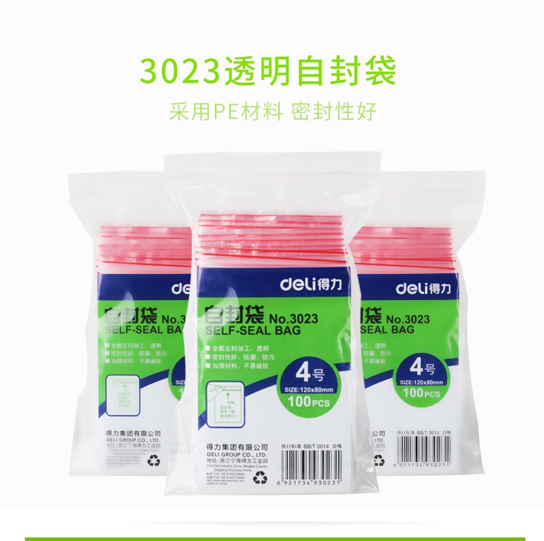 得力3023自封袋4號120*80mm*100pcs