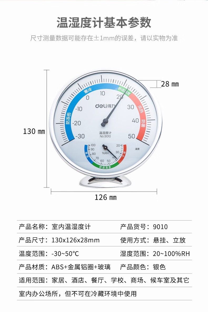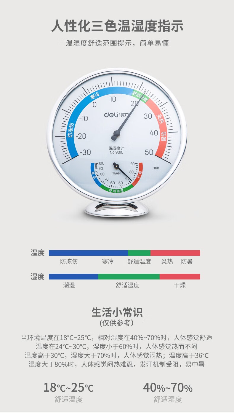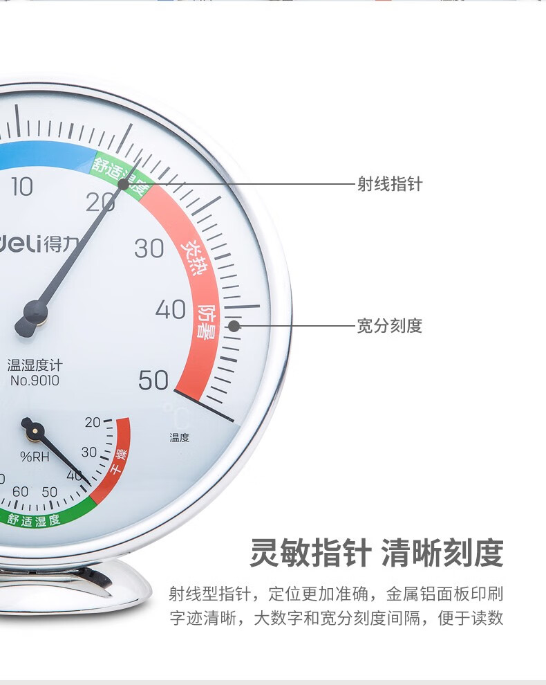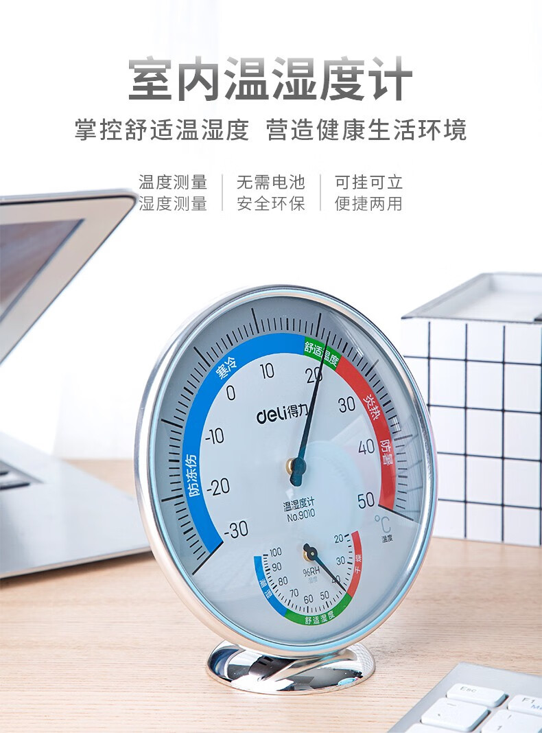得力9010室內(nèi)溫濕度計(銀色)