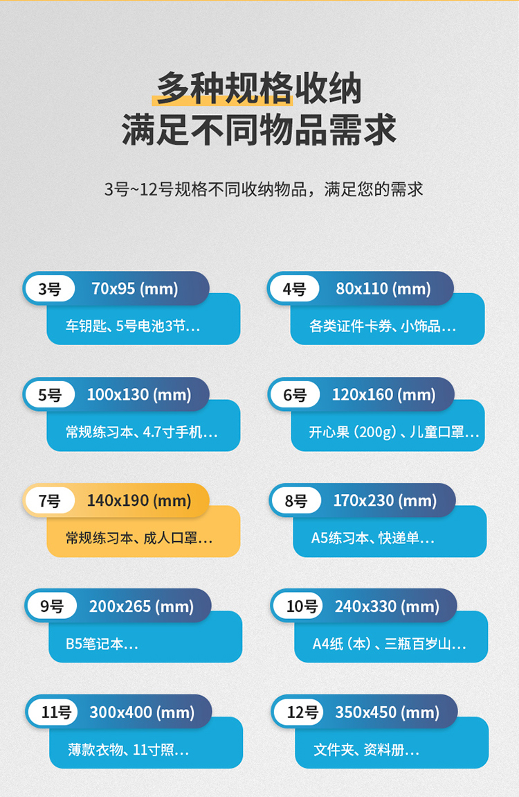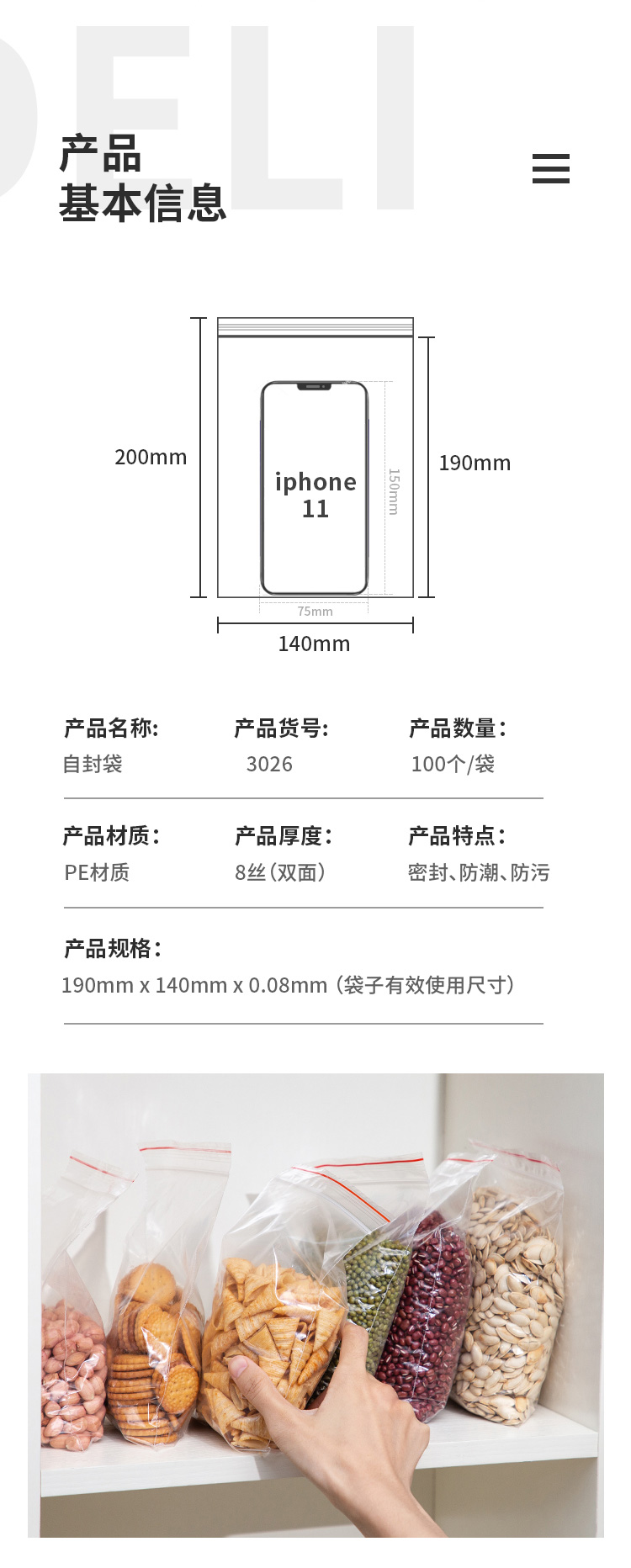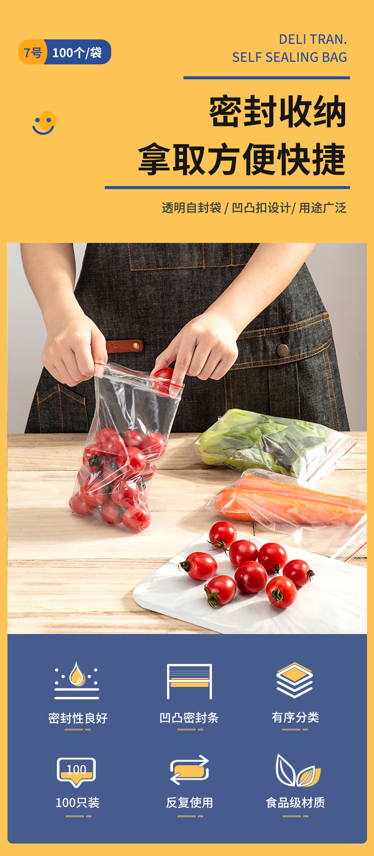 得力3026自封袋(透明)-7號(100個/包)200x140*0.04mm