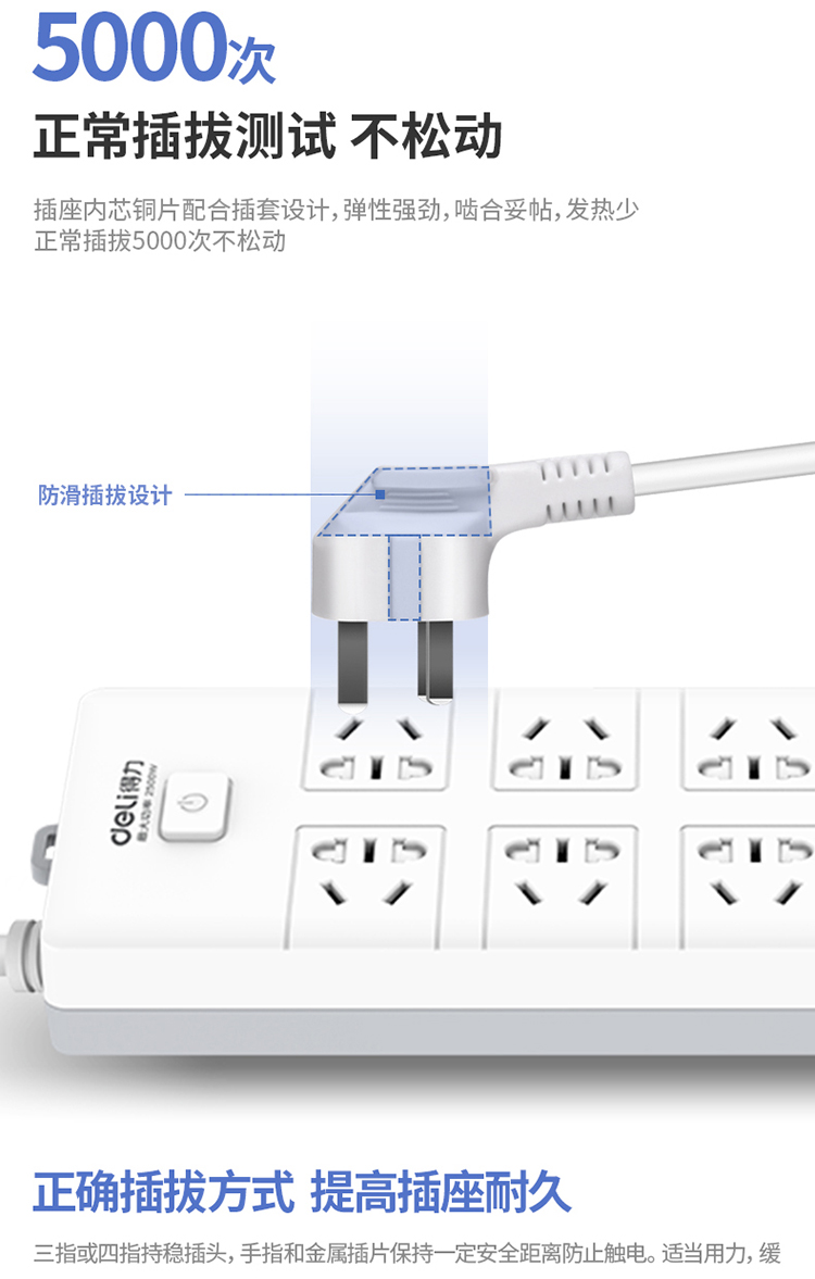 得力18275(02)插座_10組_2米_PVC袋裝(白)