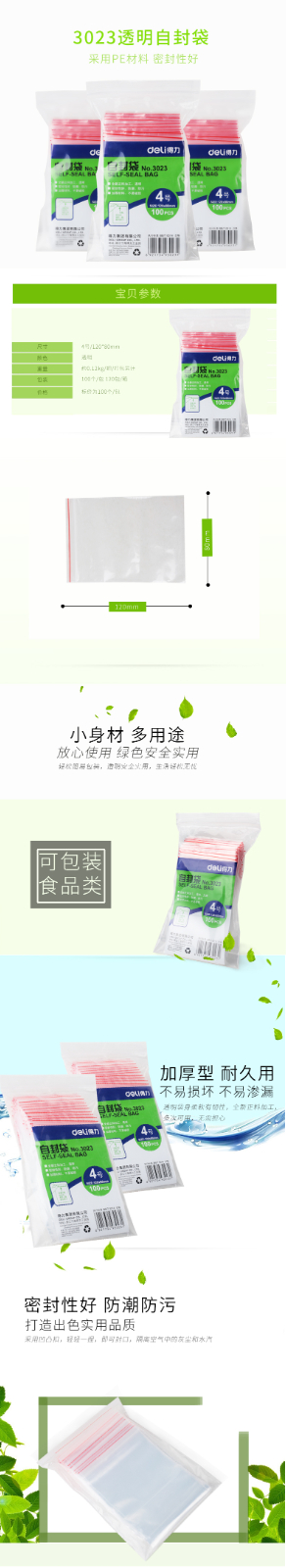 得力3027自封袋8號240*170mm*100pcs