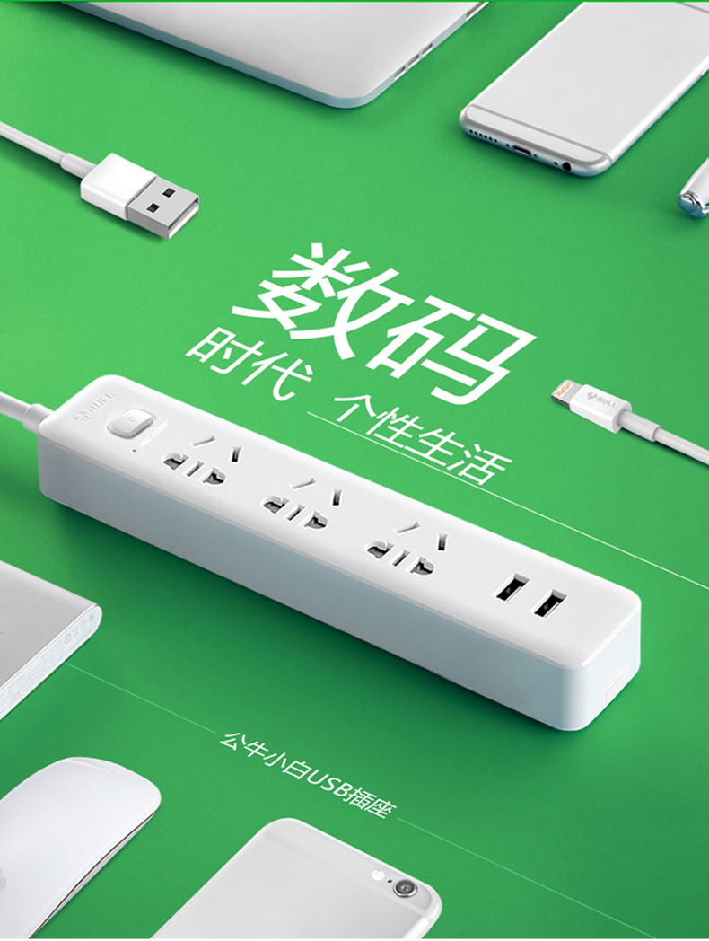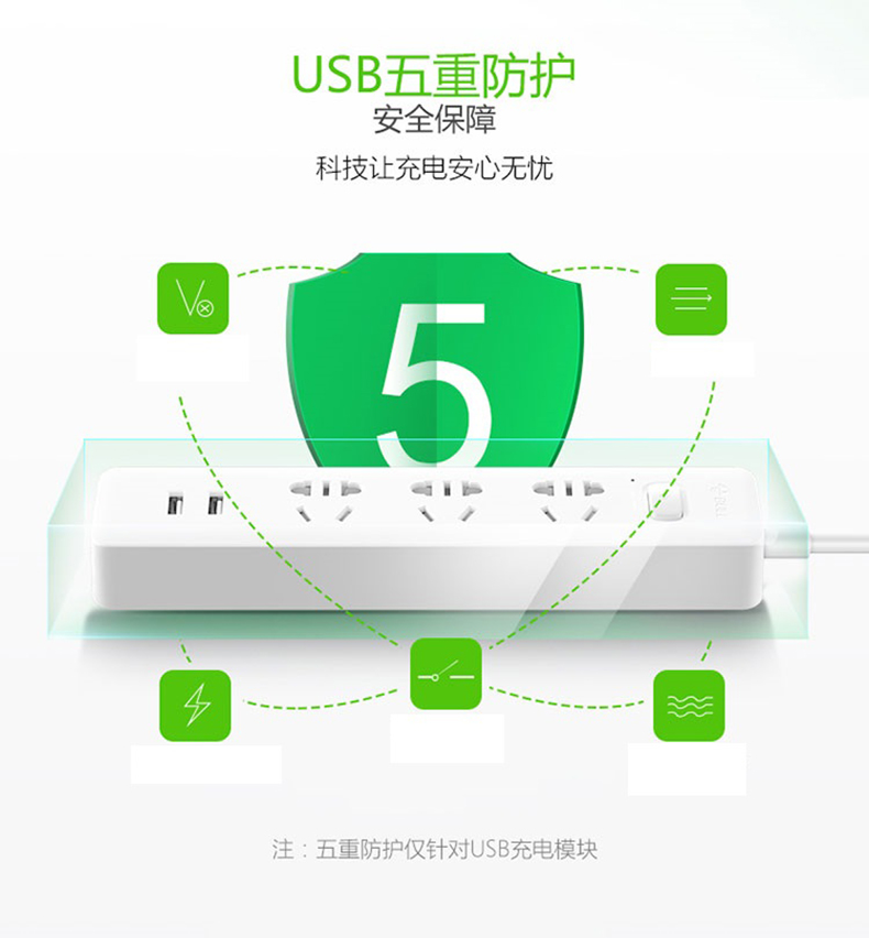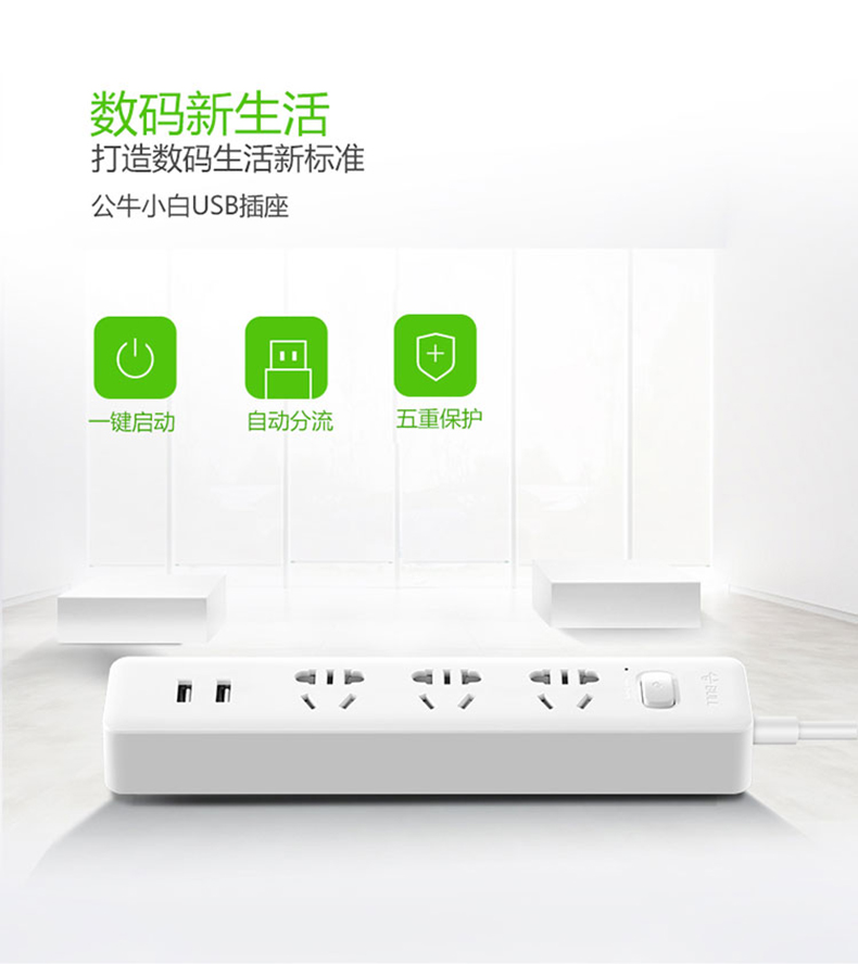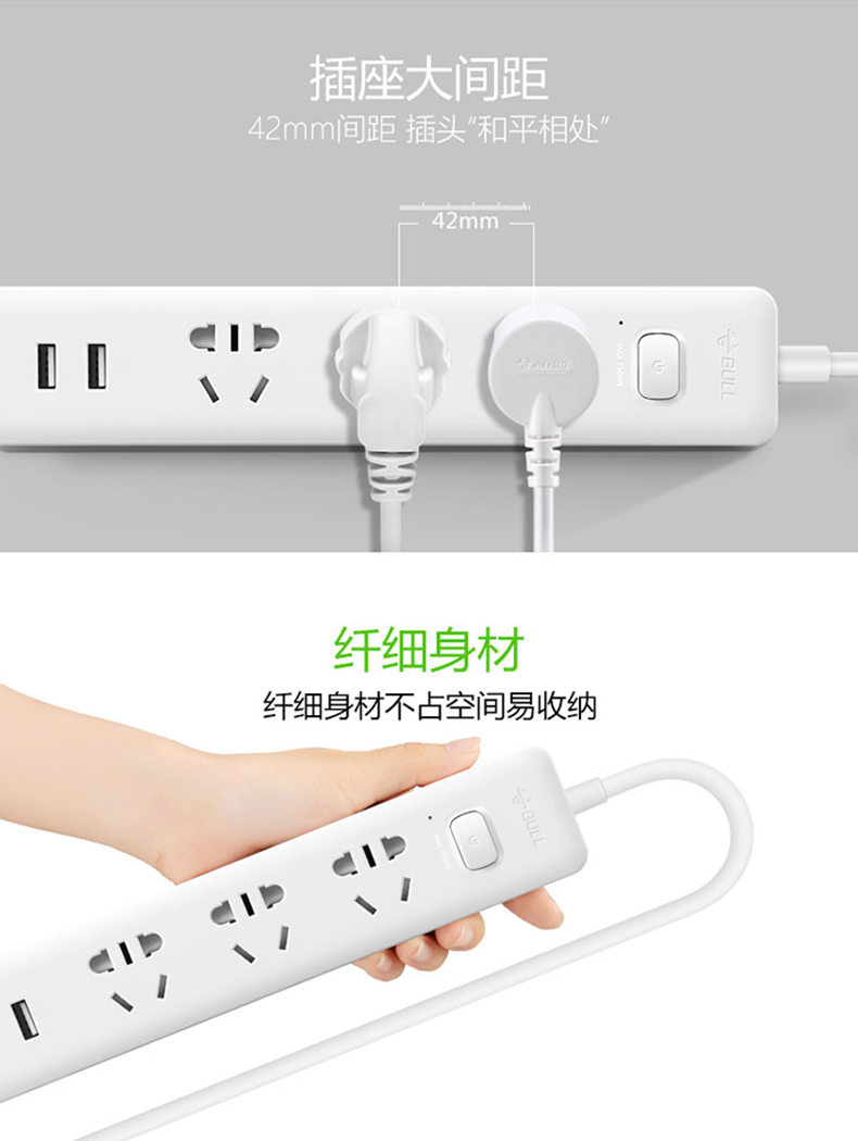 公牛GNV-UUA123插線板1.5米 3位+2位USB