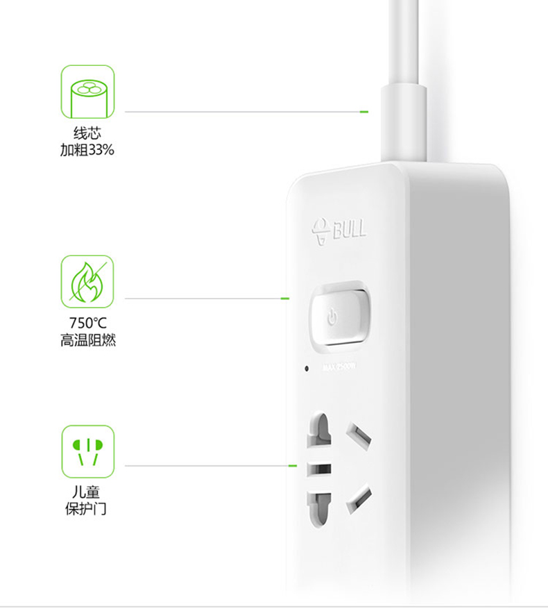 公牛GN-212插線板 總控3孔1.8米
