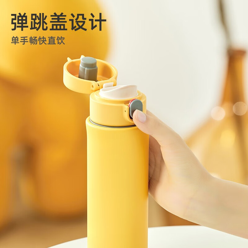 得力LL609彈蓋保溫杯420ml(黃)