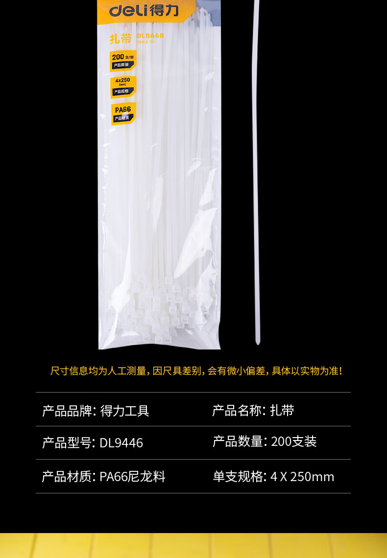 得力DL9446扎帶4x250mm (白)