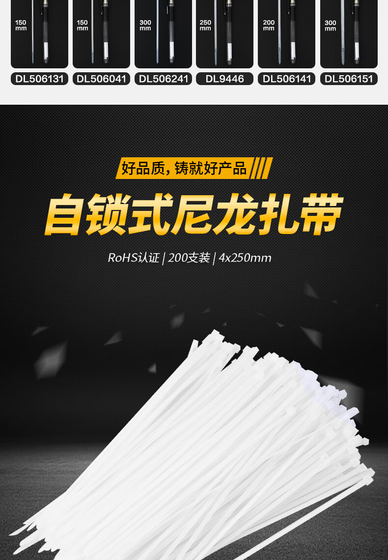 得力DL9447扎帶4x250mm (黑)