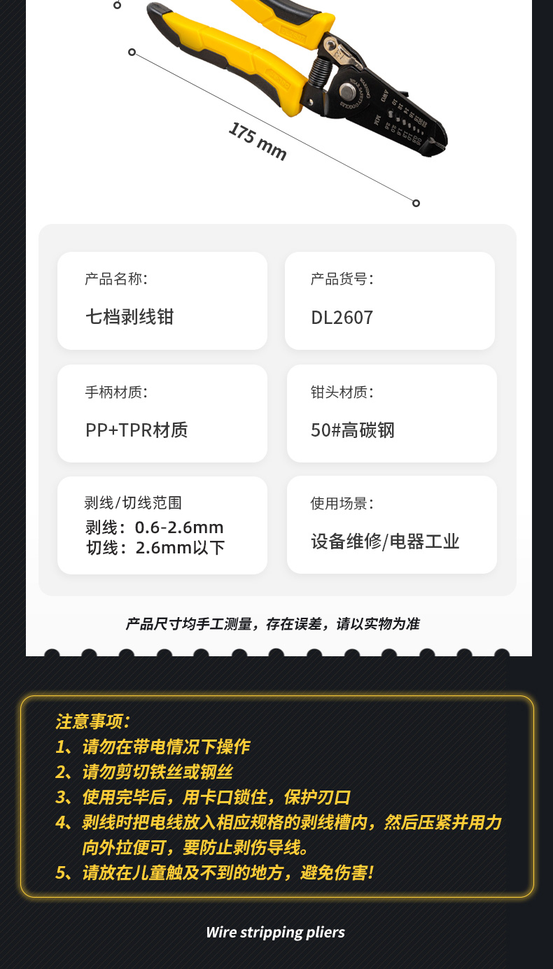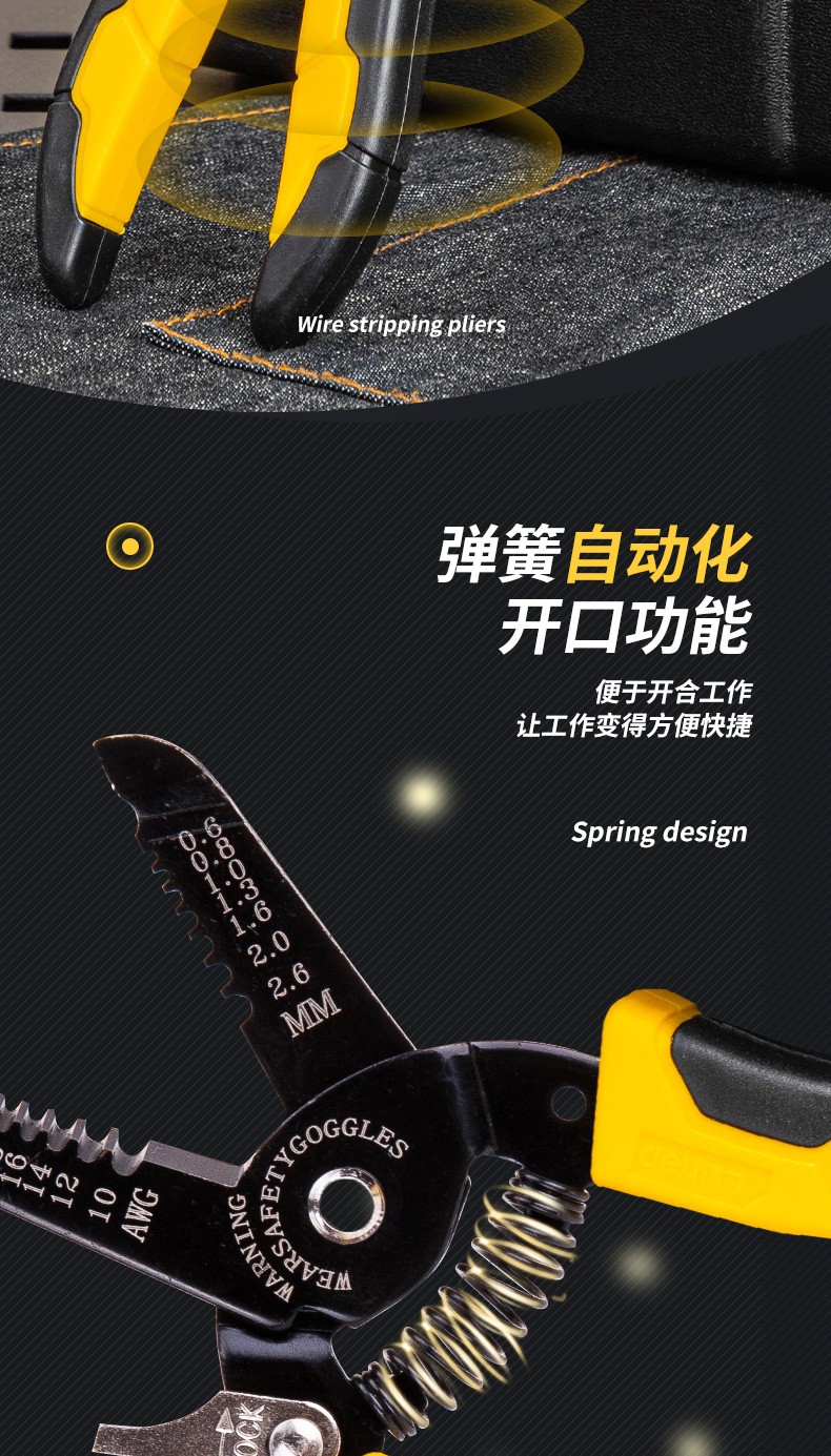 得力DL2607剝線鉗(黃)0.6-2.6mm