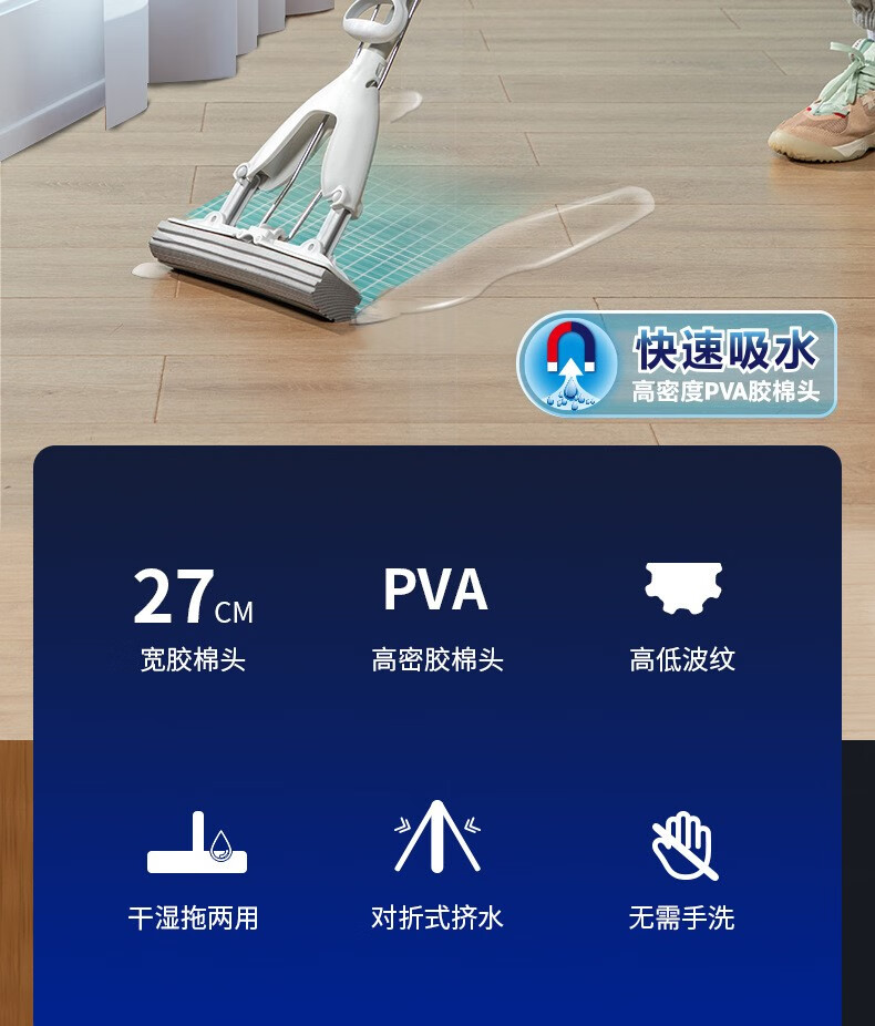 得力LQ133-墩布拖把(灰色)(1套)