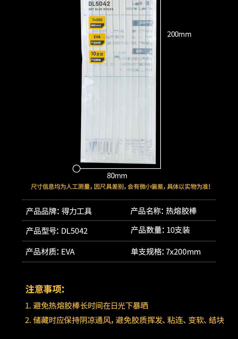 得力DL5042熱熔膠棒(白)7x200mmx10支