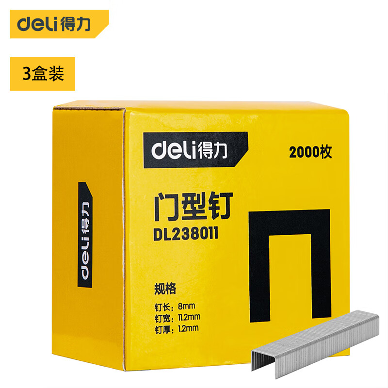 得力DL238011門型釘(銀)8x11.2x1.2mm