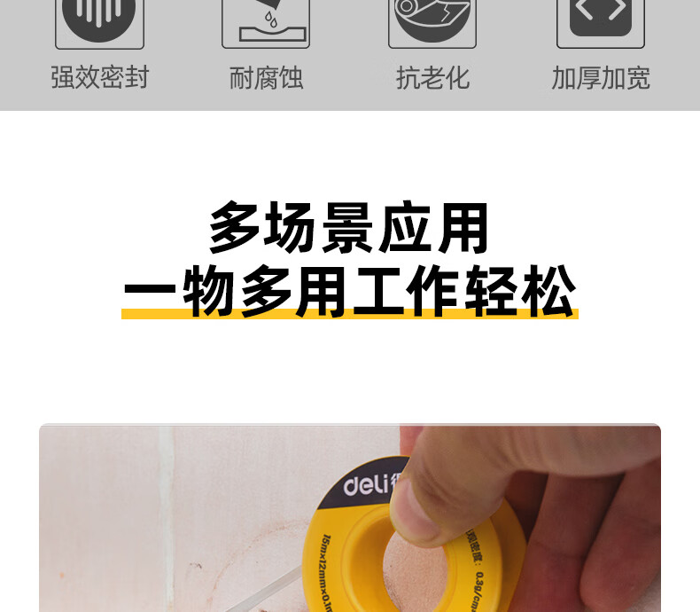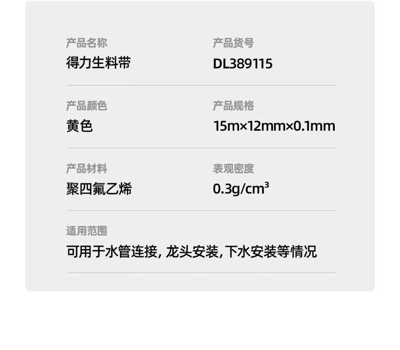 得力DL389115生料帶(白)15mx12mm×0.1mm