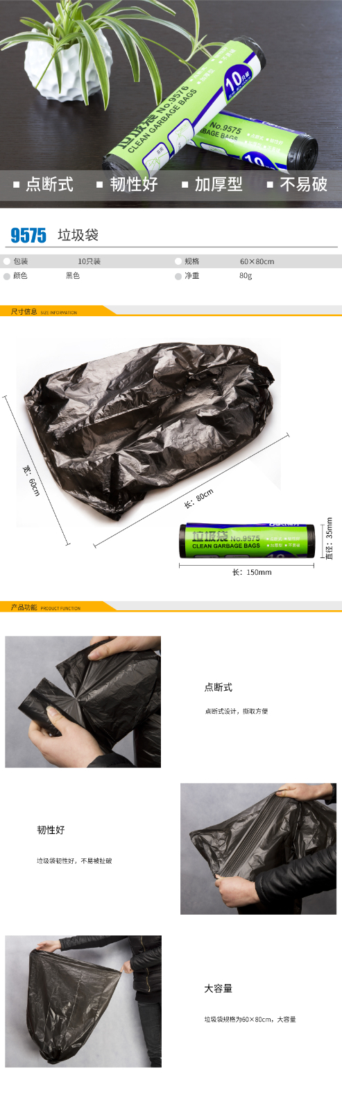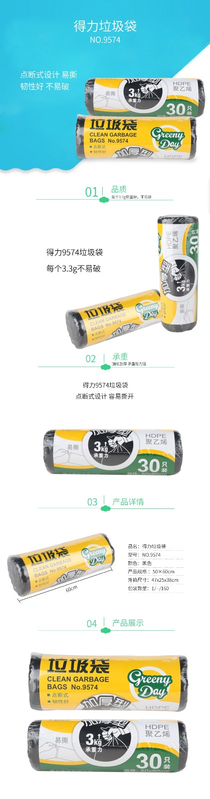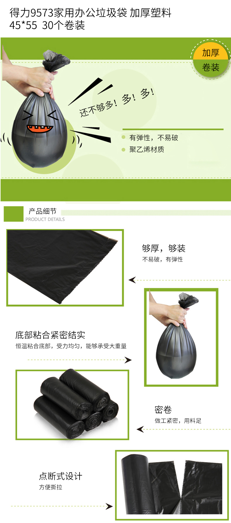 得力9575垃圾袋(黑)60*80cm(10個/卷)0八角底