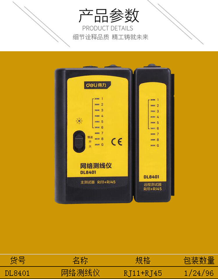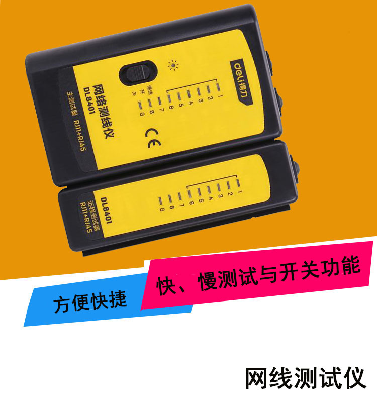 得力DL8401網絡測線儀(黃)RJ11+RJ45