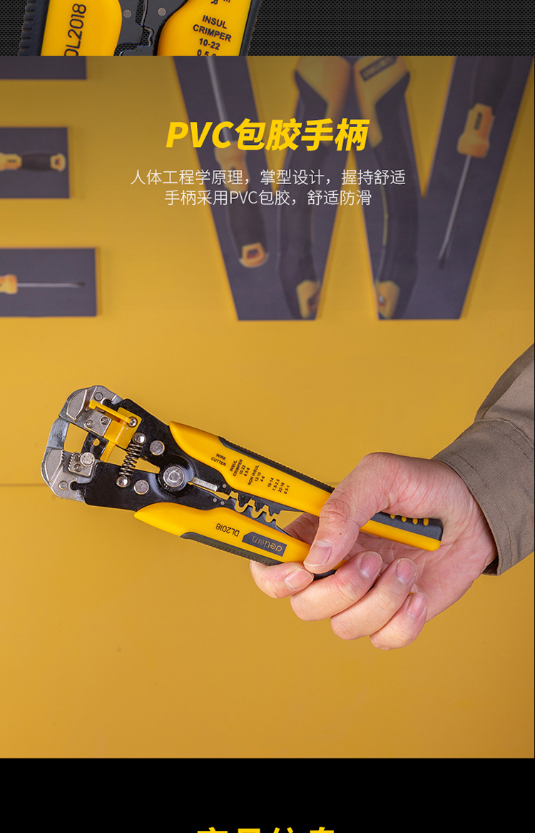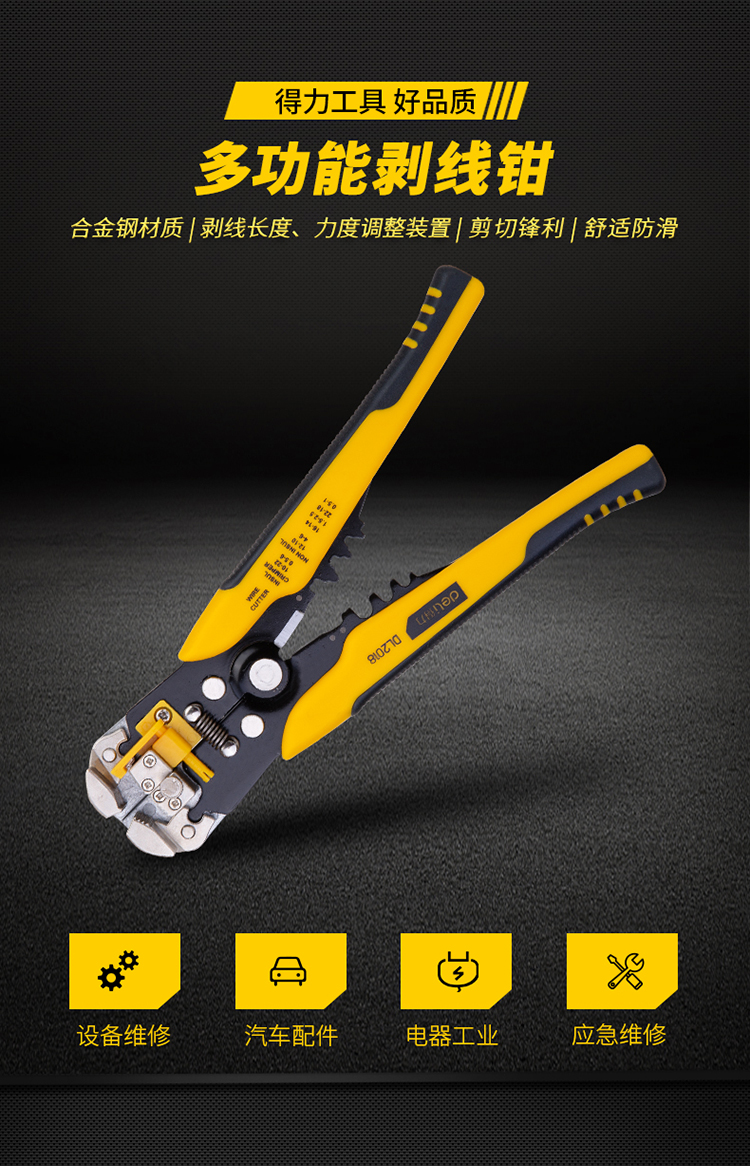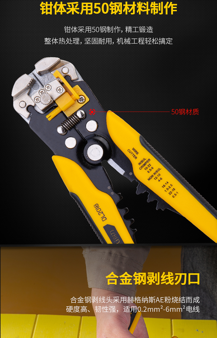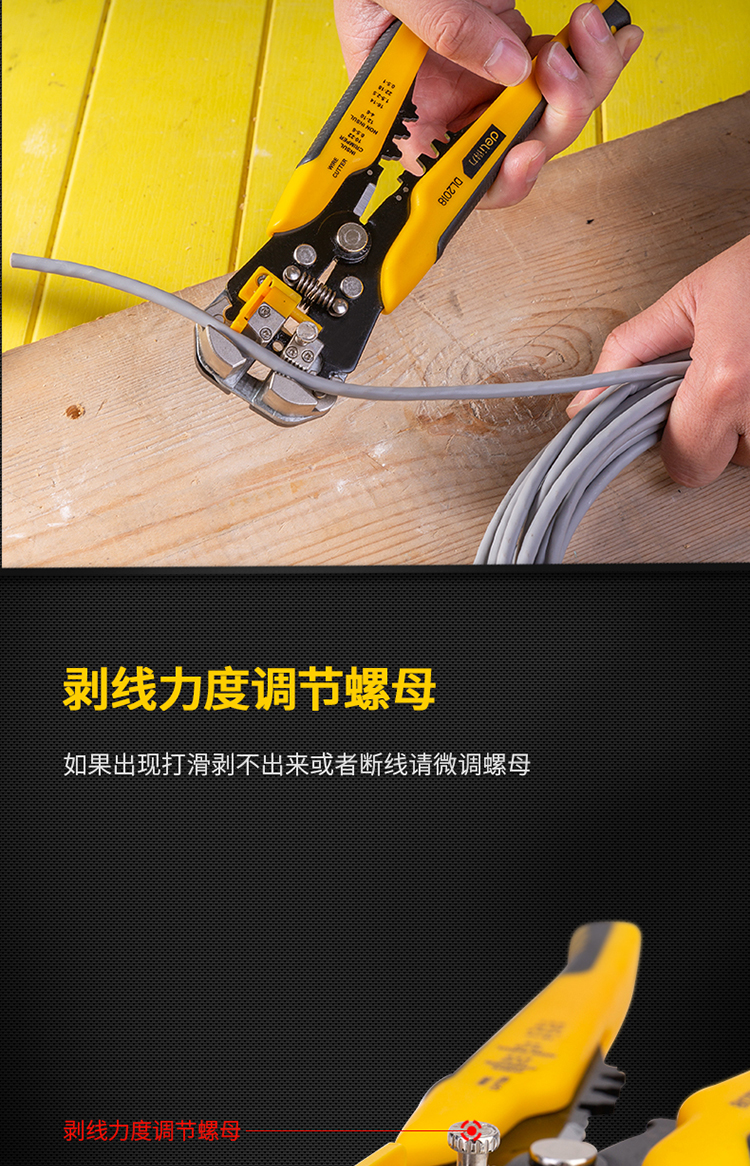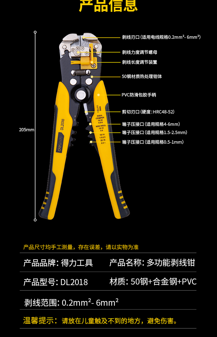 得力DL2018自動剝線鉗帶壓接(黃)0.2-6.0mm