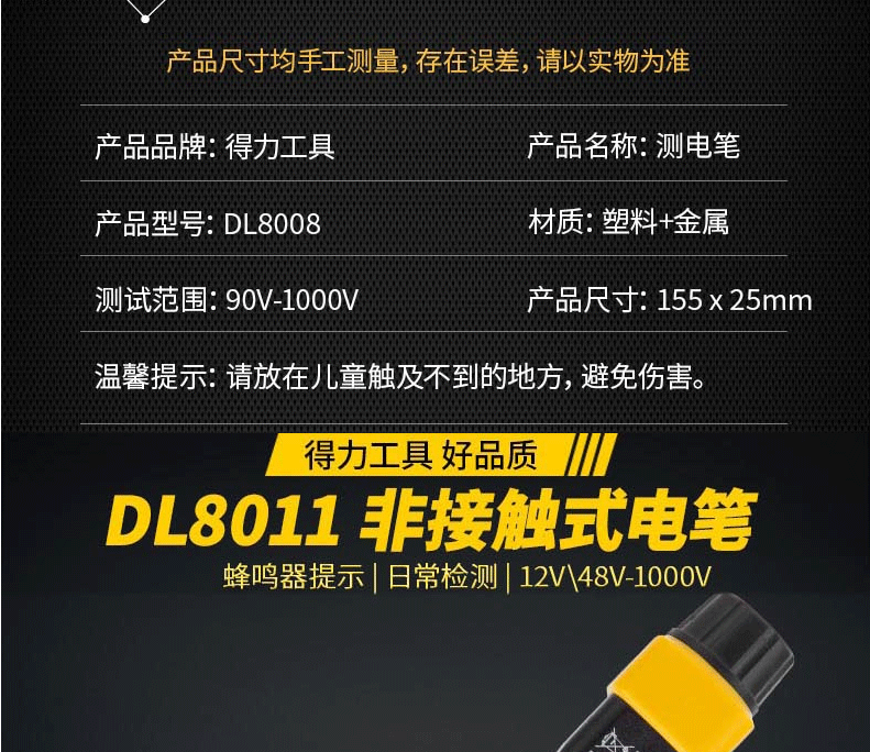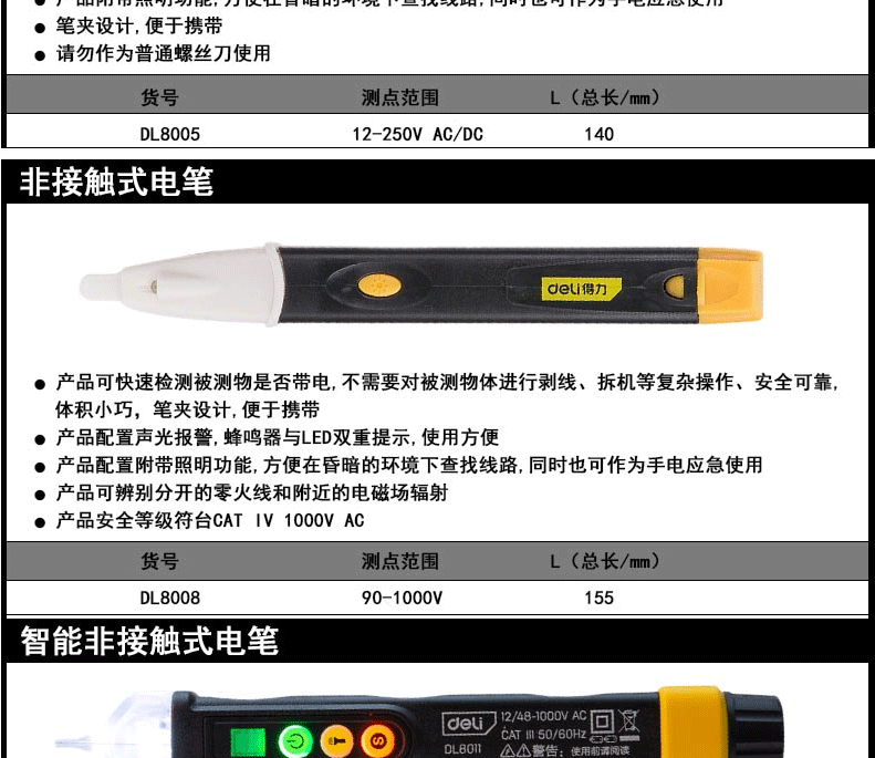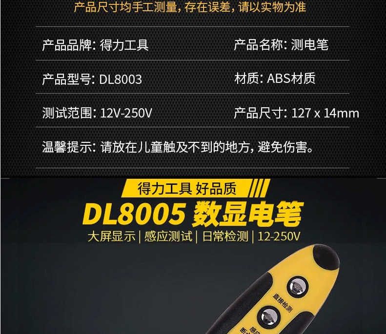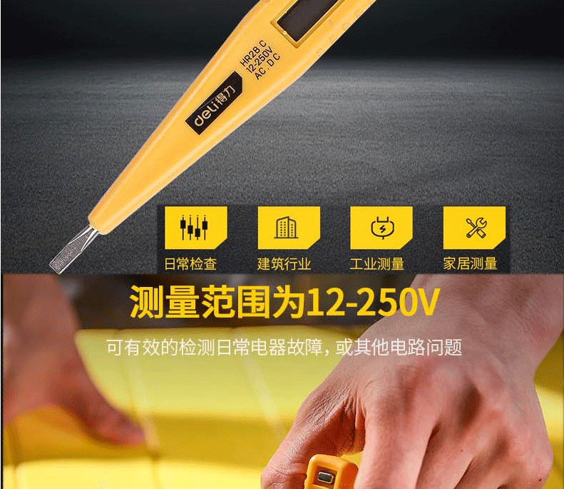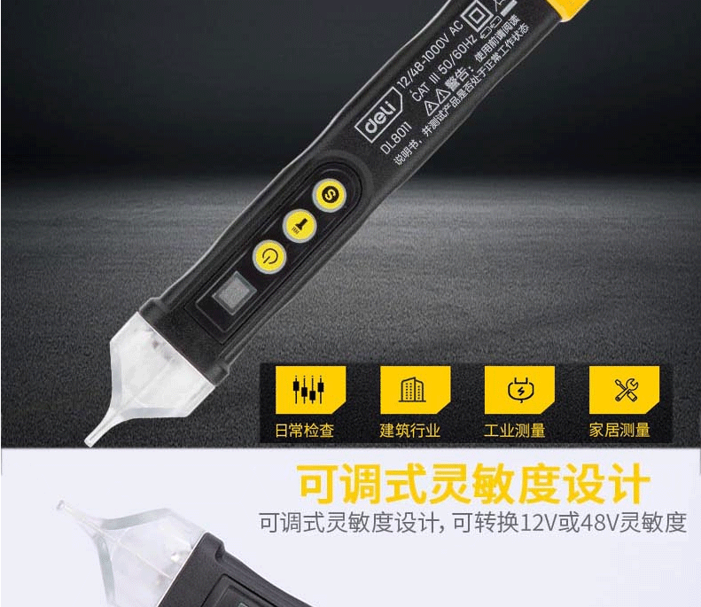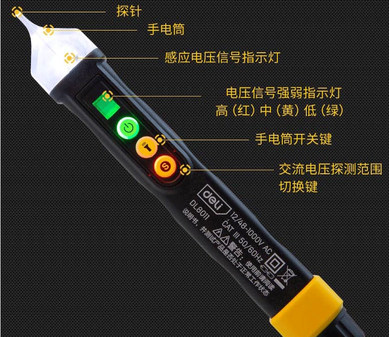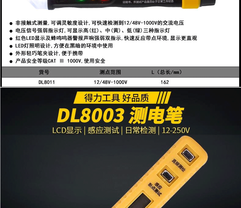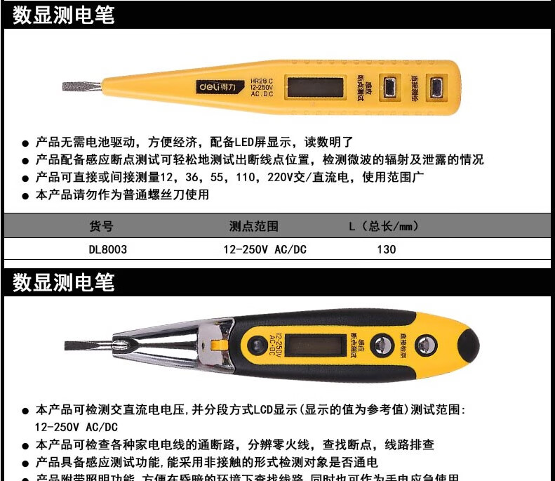 得力DL8003測(cè)電筆數(shù)顯(黃)12-250V