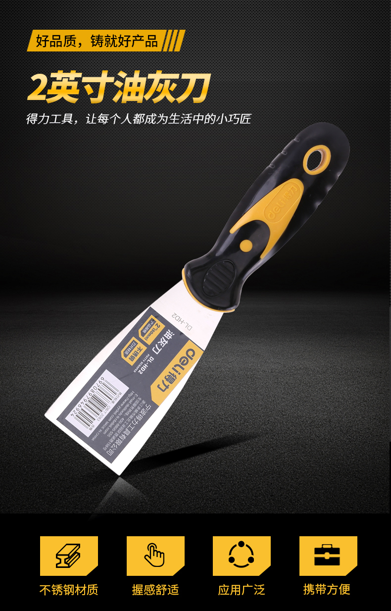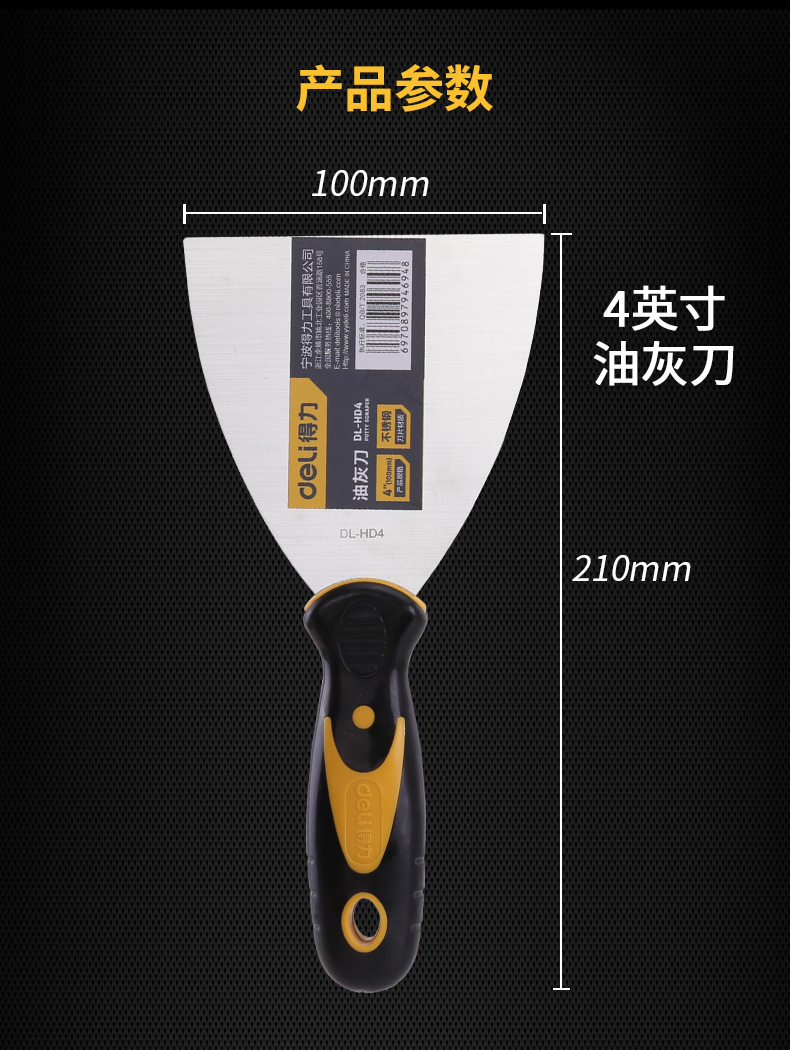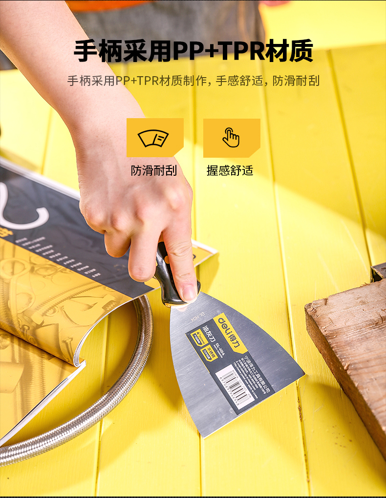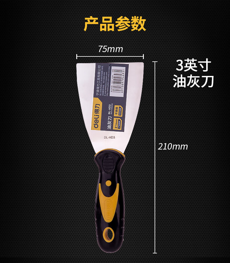 得力DL-HD3塑柄油灰刀(黃)3寸