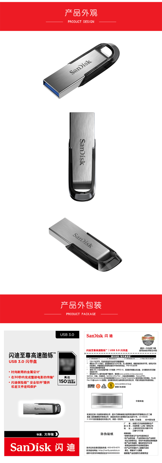 閃迪CZ73酷爍系列16G盤USB3.0